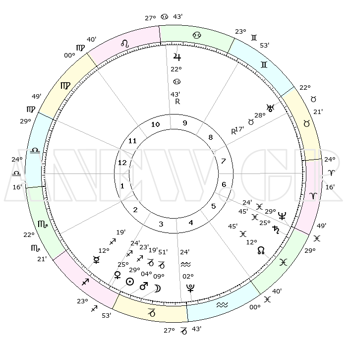 | | ΘΕΣΕΙΣ ΠΛΑΝΗΤΩΝ ΑΣΤΡΟΛΟΓΙΚΟΥ ΧΑΡΤΗ ΤΗΣ ΣΤΙΓΜΗΣ ΑΥΤΗΣ | | | | Πλανήτης | Ζώδιο | Μοίρες | Δεκαήμ. | Σε οίκο | Απόκλιση | | Ακμές των οίκων | | Ηλιος | Τοξότης | 28°27' | Τρίτο | 2 | 23 S 25 | | 1ος | 16°40' | Σκορπιός | | Σελήνη | Τοξότης | 28°43' | Τρίτο | 2 | 28 S 13 | | 2ος | 16°17' | Τοξότης | | Ερμής | Τοξότης | 10°60' | Δεύτερο | 1 | 21 S 13 | | 3ος | 19°59' | Αιγόκερως | | Αφροδίτη | Τοξότης | 24°14' | Τρίτο | 2 | 23 S 21 | | 4ος | 25°22' | Υδροχόος | | Αρης | Αιγόκερως | 03°38' | Πρώτο | 2 | 24 S 12 | | 5ος | 27°41' | Ιχθείς | | Δίας | Καρκίνος | 22°49'R | Τρίτο | 9 | 21 N 43 | | 6ος | 24°31' | Κριός | | Κρόνος | Ιχθείς | 25°42' | Τρίτο | 4 | 03 S 49 | | 7ος | 16°40' | Ταύρος | | Ουρανός | Ταύρος | 28°19'R | Τρίτο | 7 | 19 N 35 | | 8ος | 16°17' | Δίδυμοι | | Ποσειδώνας | Ιχθείς | 29°24' | Τρίτο | 5 | 01 S 28 | | 9ος | 19°59' | Καρκίνος | | Πλούτωνας | Υδροχόος | 02°23' | Πρώτο | 3 | 23 S 18 | | 10ος | 25°22' | Λέων | | Β. Δεσμός | Ιχθείς | 12°48' | Δεύτερο | 4 | 06 S 45 | | 11ος | 27°41' | Παρθένος | | Ωροσκόπος | Σκορπιός | 16°40' | Δεύτερο | | | 12ος | 24°31' | Ζυγός | | Μεσουράνημα | Λέων | 25°22' | Τρίτο | | | |
