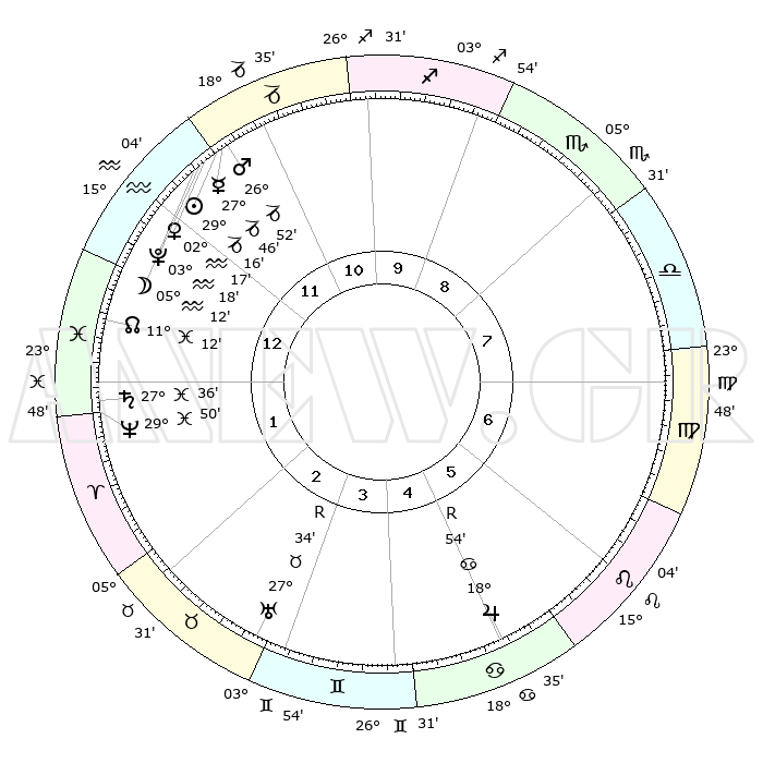 | | ΘΕΣΕΙΣ ΠΛΑΝΗΤΩΝ ΑΣΤΡΟΛΟΓΙΚΟΥ ΧΑΡΤΗ ΤΗΣ ΣΤΙΓΜΗΣ ΑΥΤΗΣ | | | | Πλανήτης | Ζώδιο | Μοίρες | Δεκαήμ. | Σε οίκο | Απόκλιση | | Ακμές των οίκων | | Ηλιος | Αιγόκερως | 29°11' | Τρίτο | 12 | 20 S 19 | | 1ος | 12°51' | Υδροχόος | | Σελήνη | Υδροχόος | 04°15' | Πρώτο | 12 | 22 S 05 | | 2ος | 28°26' | Ιχθείς | | Ερμής | Αιγόκερως | 27°38' | Τρίτο | 12 | 22 S 35 | | 3ος | 04°34' | Ταύρος | | Αφροδίτη | Υδροχόος | 02°12' | Πρώτο | 12 | 20 S 44 | | 4ος | 01°01' | Δίδυμοι | | Αρης | Αιγόκερως | 26°48' | Τρίτο | 12 | 21 S 46 | | 5ος | 23°03' | Δίδυμοι | | Δίας | Καρκίνος | 18°55'R | Δεύτερο | 6 | 22 N 23 | | 6ος | 15°09' | Καρκίνος | | Κρόνος | Ιχθείς | 27°36' | Τρίτο | 1 | 02 S 59 | | 7ος | 12°51' | Λέων | | Ουρανός | Ταύρος | 27°34'R | Τρίτο | 3 | 19 N 25 | | 8ος | 28°26' | Παρθένος | | Ποσειδώνας | Ιχθείς | 29°50' | Τρίτο | 2 | 01 S 17 | | 9ος | 04°34' | Σκορπιός | | Πλούτωνας | Υδροχόος | 03°18' | Πρώτο | 12 | 23 S 06 | | 10ος | 01°01' | Τοξότης | | Β. Δεσμός | Ιχθείς | 11°12' | Δεύτερο | 1 | 07 S 22 | | 11ος | 23°03' | Τοξότης | | Ωροσκόπος | Υδροχόος | 12°51' | Δεύτερο | | | 12ος | 15°09' | Αιγόκερως | | Μεσουράνημα | Τοξότης | 01°01' | Πρώτο | | | |