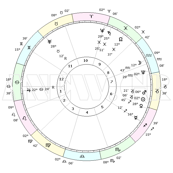 | | ΘΕΣΕΙΣ ΠΛΑΝΗΤΩΝ ΑΣΤΡΟΛΟΓΙΚΟΥ ΧΑΡΤΗ ΤΗΣ ΣΤΙΓΜΗΣ ΑΥΤΗΣ | | | | Πλανήτης | Ζώδιο | Μοίρες | Δεκαήμ. | Σε οίκο | Απόκλιση | | Ακμές των οίκων | | Ηλιος | Αιγόκερως | 02°01' | Πρώτο | 7 | 23 S 25 | | 1ος | 25°11' | Δίδυμοι | | Σελήνη | Υδροχόος | 11°48' | Δεύτερο | 9 | 19 S 38 | | 2ος | 16°20' | Καρκίνος | | Ερμής | Τοξότης | 16°05' | Δεύτερο | 6 | 22 S 17 | | 3ος | 07°51' | Λέων | | Αφροδίτη | Τοξότης | 28°39' | Τρίτο | 7 | 23 S 36 | | 4ος | 03°26' | Παρθένος | | Αρης | Αιγόκερως | 06°17' | Πρώτο | 7 | 24 S 07 | | 5ος | 06°33' | Ζυγός | | Δίας | Καρκίνος | 22°24'R | Τρίτο | 2 | 21 N 47 | | 6ος | 16°48' | Σκορπιός | | Κρόνος | Ιχθείς | 25°51' | Τρίτο | 10 | 03 S 45 | | 7ος | 25°11' | Τοξότης | | Ουρανός | Ταύρος | 28°12'R | Τρίτο | 12 | 19 N 33 | | 8ος | 16°19' | Αιγόκερως | | Ποσειδώνας | Ιχθείς | 29°25' | Τρίτο | 10 | 01 S 27 | | 9ος | 07°51' | Υδροχόος | | Πλούτωνας | Υδροχόος | 02°29' | Πρώτο | 8 | 23 S 16 | | 10ος | 03°26' | Ιχθείς | | Β. Δεσμός | Ιχθείς | 12°37' | Δεύτερο | 10 | 06 S 50 | | 11ος | 06°33' | Κριός | | Ωροσκόπος | Δίδυμοι | 25°11' | Τρίτο | | | 12ος | 16°48' | Ταύρος | | Μεσουράνημα | Ιχθείς | 03°26' | Πρώτο | | | |