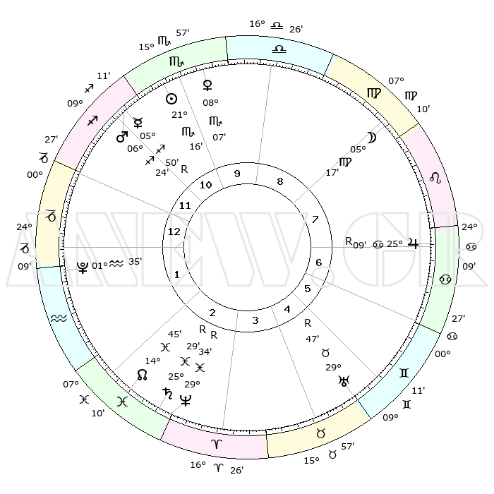 | | ΘΕΣΕΙΣ ΠΛΑΝΗΤΩΝ ΑΣΤΡΟΛΟΓΙΚΟΥ ΧΑΡΤΗ ΤΗΣ ΣΤΙΓΜΗΣ ΑΥΤΗΣ | | | | Πλανήτης | Ζώδιο | Μοίρες | Δεκαήμ. | Σε οίκο | Απόκλιση | | Ακμές των οίκων | | Ηλιος | Σκορπιός | 21°12' | Τρίτο | 11 | 18 S 03 | | 1ος | 29°56' | Τοξότης | | Σελήνη | Παρθένος | 04°26' | Πρώτο | 8 | 10 N 51 | | 2ος | 07°04' | Υδροχόος | | Ερμής | Τοξότης | 05°52'R | Πρώτο | 11 | 22 S 55 | | 3ος | 17°04' | Ιχθείς | | Αφροδίτη | Σκορπιός | 08°02' | Πρώτο | 10 | 13 S 00 | | 4ος | 21°01' | Κριός | | Αρης | Τοξότης | 06°21' | Πρώτο | 11 | 21 S 52 | | 5ος | 17°20' | Ταύρος | | Δίας | Καρκίνος | 25°09'R | Τρίτο | 7 | 21 N 13 | | 6ος | 09°09' | Δίδυμοι | | Κρόνος | Ιχθείς | 25°29'R | Τρίτο | 3 | 04 S 02 | | 7ος | 29°56' | Δίδυμοι | | Ουρανός | Ταύρος | 29°47'R | Τρίτο | 5 | 19 N 54 | | 8ος | 07°04' | Λέων | | Ποσειδώνας | Ιχθείς | 29°34'R | Τρίτο | 3 | 01 S 25 | | 9ος | 17°04' | Παρθένος | | Πλούτωνας | Υδροχόος | 01°35' | Πρώτο | 1 | 23 S 29 | | 10ος | 21°01' | Ζυγός | | Β. Δεσμός | Ιχθείς | 14°45' | Δεύτερο | 2 | 06 S 00 | | 11ος | 17°20' | Σκορπιός | | Ωροσκόπος | Τοξότης | 29°56' | Τρίτο | | | 12ος | 09°09' | Τοξότης | | Μεσουράνημα | Ζυγός | 21°01' | Τρίτο | | | |