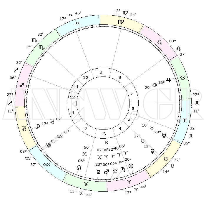 | | ΘΕΣΕΙΣ ΠΛΑΝΗΤΩΝ ΑΣΤΡΟΛΟΓΙΚΟΥ ΧΑΡΤΗ ΤΗΣ ΣΤΙΓΜΗΣ ΑΥΤΗΣ | | | | Πλανήτης | Ζώδιο | Μοίρες | Δεκαήμ. | Σε οίκο | Απόκλιση | | Ακμές των οίκων | | Ηλιος | Κριός | 19°60' | Δεύτερο | 5 | 07 N 49 | | 1ος | 02°55' | Τοξότης | | Σελήνη | Αιγόκερως | 16°05' | Δεύτερο | 2 | 26 S 31 | | 2ος | 04°28' | Αιγόκερως | | Ερμής | Ιχθείς | 23°01' | Τρίτο | 4 | 04 S 54 | | 3ος | 10°39' | Υδροχόος | | Αφροδίτη | Ταύρος | 12°31' | Δεύτερο | 6 | 15 N 32 | | 4ος | 16°45' | Ιχθείς | | Αρης | Κριός | 00°02'R | Πρώτο | 4 | 00 S 55 | | 5ος | 17°24' | Κριός | | Δίας | Καρκίνος | 16°28' | Δεύτερο | 8 | 22 N 48 | | 6ος | 12°03' | Ταύρος | | Κρόνος | Κριός | 06°45' | Πρώτο | 4 | 00 N 43 | | 7ος | 02°55' | Δίδυμοι | | Ουρανός | Ταύρος | 29°10' | Τρίτο | 6 | 19 N 48 | | 8ος | 04°28' | Καρκίνος | | Ποσειδώνας | Κριός | 02°32' | Πρώτο | 4 | 00 S 12 | | 9ος | 10°39' | Λέων | | Πλούτωνας | Υδροχόος | 05°21' | Πρώτο | 2 | 22 S 47 | | 10ος | 16°45' | Παρθένος | | Β. Δεσμός | Ιχθείς | 06°56' | Πρώτο | 3 | 08 S 58 | | 11ος | 17°24' | Ζυγός | | Ωροσκόπος | Τοξότης | 02°55' | Πρώτο | | | 12ος | 12°03' | Σκορπιός | | Μεσουράνημα | Παρθένος | 16°45' | Δεύτερο | | | |