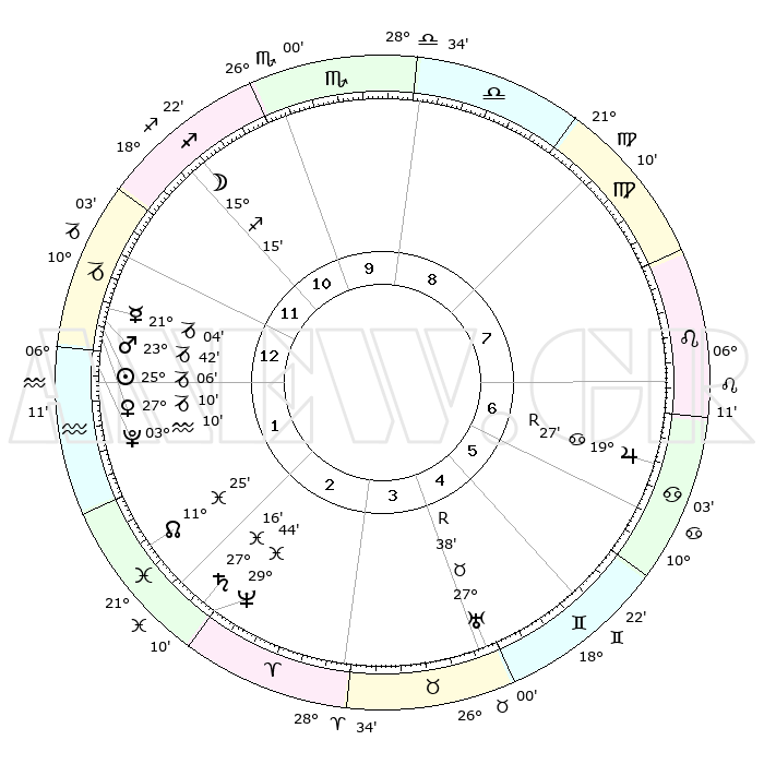| | ΘΕΣΕΙΣ ΠΛΑΝΗΤΩΝ ΑΣΤΡΟΛΟΓΙΚΟΥ ΧΑΡΤΗ ΤΗΣ ΣΤΙΓΜΗΣ ΑΥΤΗΣ | | | | Πλανήτης | Ζώδιο | Μοίρες | Δεκαήμ. | Σε οίκο | Απόκλιση | | Ακμές των οίκων | | Ηλιος | Αιγόκερως | 25°03' | Τρίτο | 1 | 21 S 07 | | 1ος | 11°22' | Αιγόκερως | | Σελήνη | Τοξότης | 14°31' | Δεύτερο | 11 | 27 S 36 | | 2ος | 21°25' | Υδροχόος | | Ερμής | Αιγόκερως | 20°58' | Τρίτο | 1 | 23 S 34 | | 3ος | 01°41' | Κριός | | Αφροδίτη | Αιγόκερως | 27°05' | Τρίτο | 1 | 21 S 42 | | 4ος | 03°36' | Ταύρος | | Αρης | Αιγόκερως | 23°39' | Τρίτο | 1 | 22 S 19 | | 5ος | 28°16' | Ταύρος | | Δίας | Καρκίνος | 19°27'R | Δεύτερο | 7 | 22 N 18 | | 6ος | 19°34' | Δίδυμοι | | Κρόνος | Ιχθείς | 27°16' | Τρίτο | 2 | 03 S 07 | | 7ος | 11°22' | Καρκίνος | | Ουρανός | Ταύρος | 27°38'R | Τρίτο | 4 | 19 N 26 | | 8ος | 21°25' | Λέων | | Ποσειδώνας | Ιχθείς | 29°44' | Τρίτο | 2 | 01 S 19 | | 9ος | 01°41' | Ζυγός | | Πλούτωνας | Υδροχόος | 03°10' | Πρώτο | 1 | 23 S 08 | | 10ος | 03°36' | Σκορπιός | | Β. Δεσμός | Ιχθείς | 11°25' | Δεύτερο | 2 | 07 S 17 | | 11ος | 28°16' | Σκορπιός | | Ωροσκόπος | Αιγόκερως | 11°22' | Δεύτερο | | | 12ος | 19°34' | Τοξότης | | Μεσουράνημα | Σκορπιός | 03°36' | Πρώτο | | | |
