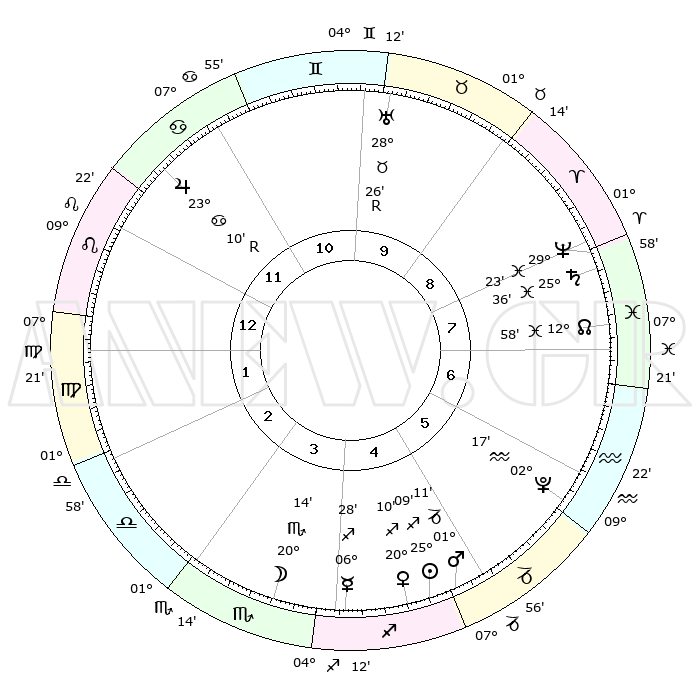| | ΘΕΣΕΙΣ ΠΛΑΝΗΤΩΝ ΑΣΤΡΟΛΟΓΙΚΟΥ ΧΑΡΤΗ ΤΗΣ ΣΤΙΓΜΗΣ ΑΥΤΗΣ | | | | Πλανήτης | Ζώδιο | Μοίρες | Δεκαήμ. | Σε οίκο | Απόκλιση | | Ακμές των οίκων | | Ηλιος | Τοξότης | 24°48' | Τρίτο | 8 | 23 S 20 | | 1ος | 12°27' | Ταύρος | | Σελήνη | Σκορπιός | 16°09' | Δεύτερο | 7 | 20 S 57 | | 2ος | 11°20' | Δίδυμοι | | Ερμής | Τοξότης | 05°60' | Πρώτο | 7 | 19 S 59 | | 3ος | 03°46' | Καρκίνος | | Αφροδίτη | Τοξότης | 19°44' | Δεύτερο | 8 | 22 S 56 | | 4ος | 25°39' | Καρκίνος | | Αρης | Αιγόκερως | 00°55' | Πρώτο | 8 | 24 S 13 | | 5ος | 21°27' | Λέων | | Δίας | Καρκίνος | 23°12'R | Τρίτο | 3 | 21 N 38 | | 6ος | 26°40' | Παρθένος | | Κρόνος | Ιχθείς | 25°35' | Τρίτο | 11 | 03 S 53 | | 7ος | 12°27' | Σκορπιός | | Ουρανός | Ταύρος | 28°26'R | Τρίτο | 1 | 19 N 37 | | 8ος | 11°20' | Τοξότης | | Ποσειδώνας | Ιχθείς | 29°23' | Τρίτο | 12 | 01 S 29 | | 9ος | 03°46' | Αιγόκερως | | Πλούτωνας | Υδροχόος | 02°17' | Πρώτο | 10 | 23 S 19 | | 10ος | 25°39' | Αιγόκερως | | Β. Δεσμός | Ιχθείς | 12°59' | Δεύτερο | 11 | 06 S 41 | | 11ος | 21°27' | Υδροχόος | | Ωροσκόπος | Ταύρος | 12°27' | Δεύτερο | | | 12ος | 26°40' | Ιχθείς | | Μεσουράνημα | Αιγόκερως | 25°39' | Τρίτο | | | |