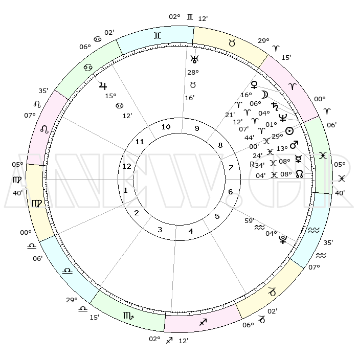 | | ΘΕΣΕΙΣ ΠΛΑΝΗΤΩΝ ΑΣΤΡΟΛΟΓΙΚΟΥ ΧΑΡΤΗ ΤΗΣ ΣΤΙΓΜΗΣ ΑΥΤΗΣ | | | | Πλανήτης | Ζώδιο | Μοίρες | Δεκαήμ. | Σε οίκο | Απόκλιση | | Ακμές των οίκων | | Ηλιος | Ιχθείς | 28°56' | Τρίτο | 8 | 00 S 26 | | 1ος | 13°29' | Λέων | | Σελήνη | Κριός | 05°07' | Πρώτο | 9 | 04 N 10 | | 2ος | 05°39' | Παρθένος | | Ερμής | Ιχθείς | 08°34'R | Πρώτο | 8 | 07 S 09 | | 3ος | 02°30' | Ζυγός | | Αφροδίτη | Κριός | 16°15' | Δεύτερο | 9 | 05 N 33 | | 4ος | 04°49' | Σκορπιός | | Αρης | Ιχθείς | 13°21' | Δεύτερο | 8 | 07 S 32 | | 5ος | 10°12' | Τοξότης | | Δίας | Καρκίνος | 15°12' | Δεύτερο | 12 | 22 N 56 | | 6ος | 13°53' | Αιγόκερως | | Κρόνος | Κριός | 04°06' | Πρώτο | 9 | 00 S 19 | | 7ος | 13°29' | Υδροχόος | | Ουρανός | Ταύρος | 28°16' | Τρίτο | 10 | 19 N 36 | | 8ος | 05°39' | Ιχθείς | | Ποσειδώνας | Κριός | 01°44' | Πρώτο | 8 | 00 S 30 | | 9ος | 02°30' | Κριός | | Πλούτωνας | Υδροχόος | 04°59' | Πρώτο | 6 | 22 S 49 | | 10ος | 04°49' | Ταύρος | | Β. Δεσμός | Ιχθείς | 08°04' | Πρώτο | 8 | 08 S 33 | | 11ος | 10°12' | Δίδυμοι | | Ωροσκόπος | Λέων | 13°29' | Δεύτερο | | | 12ος | 13°53' | Καρκίνος | | Μεσουράνημα | Ταύρος | 04°49' | Πρώτο | | | |