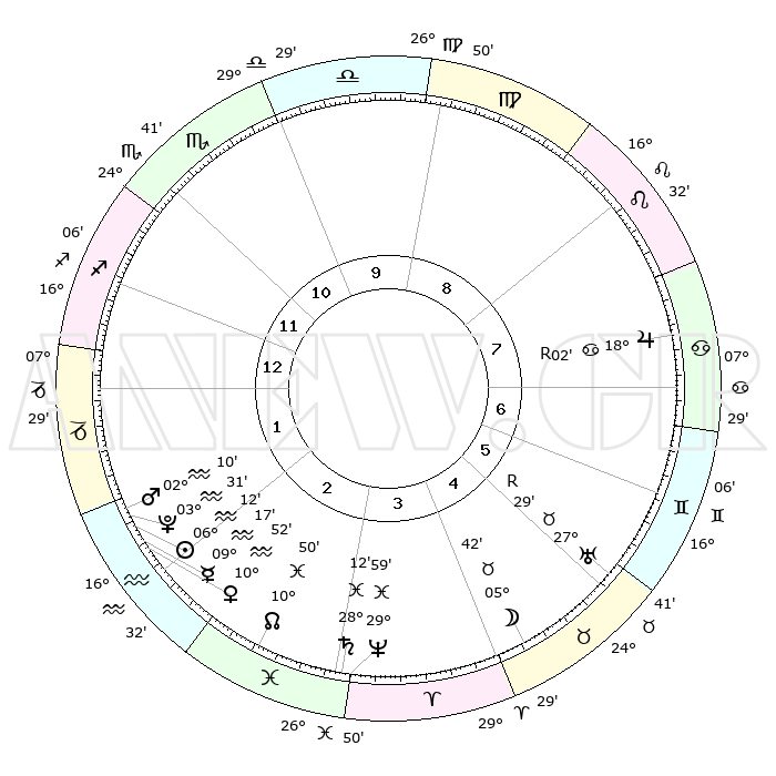 | | ΘΕΣΕΙΣ ΠΛΑΝΗΤΩΝ ΑΣΤΡΟΛΟΓΙΚΟΥ ΧΑΡΤΗ ΤΗΣ ΣΤΙΓΜΗΣ ΑΥΤΗΣ | | | | Πλανήτης | Ζώδιο | Μοίρες | Δεκαήμ. | Σε οίκο | Απόκλιση | | Ακμές των οίκων | | Ηλιος | Υδροχόος | 06°07' | Πρώτο | 2 | 18 S 44 | | 1ος | 11°48' | Τοξότης | | Σελήνη | Ταύρος | 04°35' | Πρώτο | 5 | 17 N 04 | | 2ος | 14°52' | Αιγόκερως | | Ερμής | Υδροχόος | 09°09' | Πρώτο | 2 | 19 S 58 | | 3ος | 22°33' | Υδροχόος | | Αφροδίτη | Υδροχόος | 10°46' | Δεύτερο | 2 | 18 S 44 | | 4ος | 28°28' | Ιχθείς | | Αρης | Υδροχόος | 02°07' | Πρώτο | 2 | 20 S 41 | | 5ος | 27°48' | Κριός | | Δίας | Καρκίνος | 18°03'R | Δεύτερο | 8 | 22 N 30 | | 6ος | 21°19' | Ταύρος | | Κρόνος | Ιχθείς | 28°12' | Τρίτο | 3 | 02 S 44 | | 7ος | 11°48' | Δίδυμοι | | Ουρανός | Ταύρος | 27°30'R | Τρίτο | 6 | 19 N 25 | | 8ος | 14°52' | Καρκίνος | | Ποσειδώνας | Ιχθείς | 29°59' | Τρίτο | 4 | 01 S 13 | | 9ος | 22°33' | Λέων | | Πλούτωνας | Υδροχόος | 03°31' | Πρώτο | 2 | 23 S 03 | | 10ος | 28°28' | Παρθένος | | Β. Δεσμός | Ιχθείς | 10°50' | Δεύτερο | 3 | 07 S 30 | | 11ος | 27°48' | Ζυγός | | Ωροσκόπος | Τοξότης | 11°48' | Δεύτερο | | | 12ος | 21°19' | Σκορπιός | | Μεσουράνημα | Παρθένος | 28°28' | Τρίτο | | | |