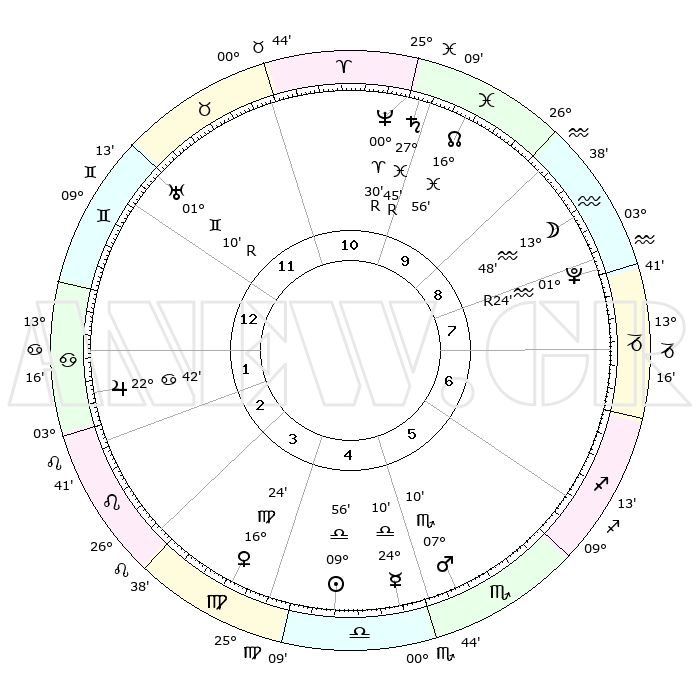 | ΘΕΣΕΙΣ ΠΛΑΝΗΤΩΝ ΑΣΤΡΟΛΟΓΙΚΟΥ ΧΑΡΤΗ ΤΗΣ ΣΤΙΓΜΗΣ ΑΥΤΗΣ | | Πλανήτης | Ζώδιο | Μοίρες | Δεκαήμ. | Σε οίκο | Απόκλιση | | Ακμές των οίκων | Ηλιος | Ζυγός | 09°52' | Πρώτο | 5 | 03 S 55 | | 1ος | 22°41' | Δίδυμοι | Σελήνη | Υδροχόος | 12°58' | Δεύτερο | 9 | 19 S 50 | | 2ος | 14°03' | Καρκίνος | Ερμής | Ζυγός | 24°04' | Τρίτο | 5 | 09 S 38 | | 3ος | 05°28' | Λέων | Αφροδίτη | Παρθένος | 16°20' | Δεύτερο | 4 | 06 N 37 | | 4ος | 00°41' | Παρθένος | Αρης | Σκορπιός | 07°07' | Πρώτο | 5 | 13 S 59 | | 5ος | 03°22' | Ζυγός | Δίας | Καρκίνος | 22°41' | Τρίτο | 2 | 21 N 33 | | 6ος | 13°40' | Σκορπιός | Κρόνος | Ιχθείς | 27°45'R | Τρίτο | 10 | 03 S 12 | | 7ος | 22°41' | Τοξότης | Ουρανός | Δίδυμοι | 01°10'R | Πρώτο | 12 | 20 N 11 | | 8ος | 14°03' | Αιγόκερως | Ποσειδώνας | Κριός | 00°30'R | Πρώτο | 10 | 01 S 04 | | 9ος | 05°28' | Υδροχόος | Πλούτωνας | Υδροχόος | 01°24'R | Πρώτο | 8 | 23 S 32 | | 10ος | 00°41' | Ιχθείς | Β. Δεσμός | Ιχθείς | 16°57' | Δεύτερο | 10 | 05 S 09 | | 11ος | 03°22' | Κριός | Ωροσκόπος | Δίδυμοι | 22°41' | Τρίτο | | | 12ος | 13°40' | Ταύρος | Μεσουράνημα | Ιχθείς | 00°41' | Πρώτο | | | |