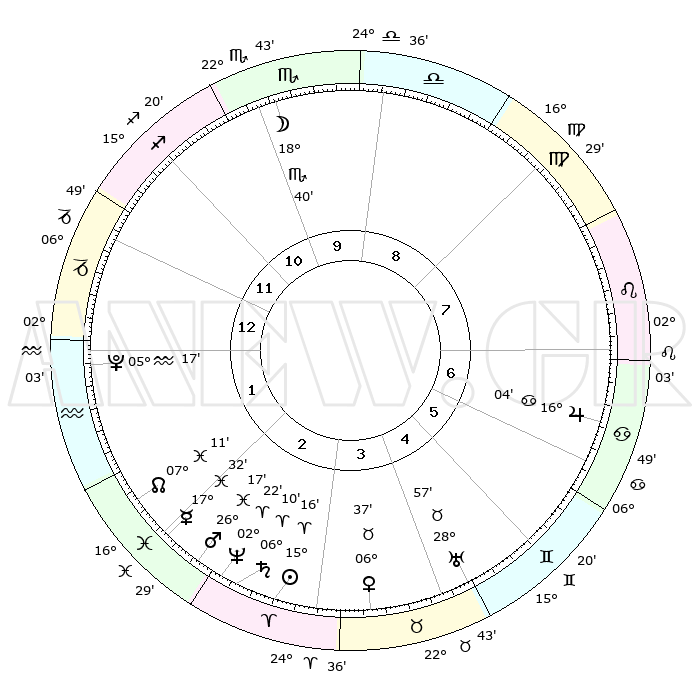 | | ΘΕΣΕΙΣ ΠΛΑΝΗΤΩΝ ΑΣΤΡΟΛΟΓΙΚΟΥ ΧΑΡΤΗ ΤΗΣ ΣΤΙΓΜΗΣ ΑΥΤΗΣ | | | | Πλανήτης | Ζώδιο | Μοίρες | Δεκαήμ. | Σε οίκο | Απόκλιση | | Ακμές των οίκων | | Ηλιος | Κριός | 15°04' | Δεύτερο | 5 | 05 N 56 | | 1ος | 25°53' | Σκορπιός | | Σελήνη | Σκορπιός | 16°17' | Δεύτερο | 12 | 21 S 17 | | 2ος | 26°28' | Τοξότης | | Ερμής | Ιχθείς | 17°19' | Δεύτερο | 4 | 06 S 42 | | 3ος | 01°30' | Υδροχόος | | Αφροδίτη | Ταύρος | 06°23' | Πρώτο | 6 | 13 N 23 | | 4ος | 07°25' | Ιχθείς | | Αρης | Ιχθείς | 26°08' | Τρίτο | 4 | 02 S 29 | | 5ος | 08°56' | Κριός | | Δίας | Καρκίνος | 16°03' | Δεύτερο | 8 | 22 N 50 | | 6ος | 04°32' | Ταύρος | | Κρόνος | Κριός | 06°08' | Πρώτο | 4 | 00 N 29 | | 7ος | 25°53' | Ταύρος | | Ουρανός | Ταύρος | 28°56' | Τρίτο | 7 | 19 N 45 | | 8ος | 26°28' | Δίδυμοι | | Ποσειδώνας | Κριός | 02°21' | Πρώτο | 4 | 00 S 16 | | 9ος | 01°30' | Λέων | | Πλούτωνας | Υδροχόος | 05°17' | Πρώτο | 3 | 22 S 47 | | 10ος | 07°25' | Παρθένος | | Β. Δεσμός | Ιχθείς | 07°12' | Πρώτο | 3 | 08 S 52 | | 11ος | 08°56' | Ζυγός | | Ωροσκόπος | Σκορπιός | 25°53' | Τρίτο | | | 12ος | 04°32' | Σκορπιός | | Μεσουράνημα | Παρθένος | 07°25' | Πρώτο | | | |