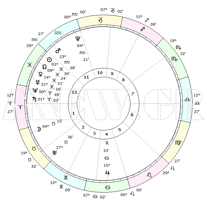 | | ΘΕΣΕΙΣ ΠΛΑΝΗΤΩΝ ΑΣΤΡΟΛΟΓΙΚΟΥ ΧΑΡΤΗ ΤΗΣ ΣΤΙΓΜΗΣ ΑΥΤΗΣ | | | | Πλανήτης | Ζώδιο | Μοίρες | Δεκαήμ. | Σε οίκο | Απόκλιση | | Ακμές των οίκων | | Ηλιος | Ιχθείς | 03°34' | Πρώτο | 1 | 10 S 12 | | 1ος | 24°30' | Υδροχόος | | Σελήνη | Ταύρος | 03°04' | Πρώτο | 2 | 16 N 33 | | 2ος | 10°14' | Κριός | | Ερμής | Ιχθείς | 21°13' | Τρίτο | 1 | 01 S 49 | | 3ος | 14°03' | Ταύρος | | Αφροδίτη | Ιχθείς | 14°44' | Δεύτερο | 1 | 07 S 20 | | 4ος | 09°01' | Δίδυμοι | | Αρης | Υδροχόος | 23°24' | Τρίτο | 12 | 14 S 45 | | 5ος | 00°45' | Καρκίνος | | Δίας | Καρκίνος | 15°33'R | Δεύτερο | 5 | 22 N 52 | | 6ος | 23°47' | Καρκίνος | | Κρόνος | Κριός | 01°02' | Πρώτο | 1 | 01 S 33 | | 7ος | 24°30' | Λέων | | Ουρανός | Ταύρος | 27°36' | Τρίτο | 3 | 19 N 27 | | 8ος | 10°14' | Ζυγός | | Ποσειδώνας | Κριός | 00°49' | Πρώτο | 1 | 00 S 53 | | 9ος | 14°03' | Σκορπιός | | Πλούτωνας | Υδροχόος | 04°21' | Πρώτο | 12 | 22 S 54 | | 10ος | 09°01' | Τοξότης | | Β. Δεσμός | Ιχθείς | 09°24' | Πρώτο | 1 | 08 S 02 | | 11ος | 00°45' | Αιγόκερως | | Ωροσκόπος | Υδροχόος | 24°30' | Τρίτο | | | 12ος | 23°47' | Αιγόκερως | | Μεσουράνημα | Τοξότης | 09°01' | Πρώτο | | | |