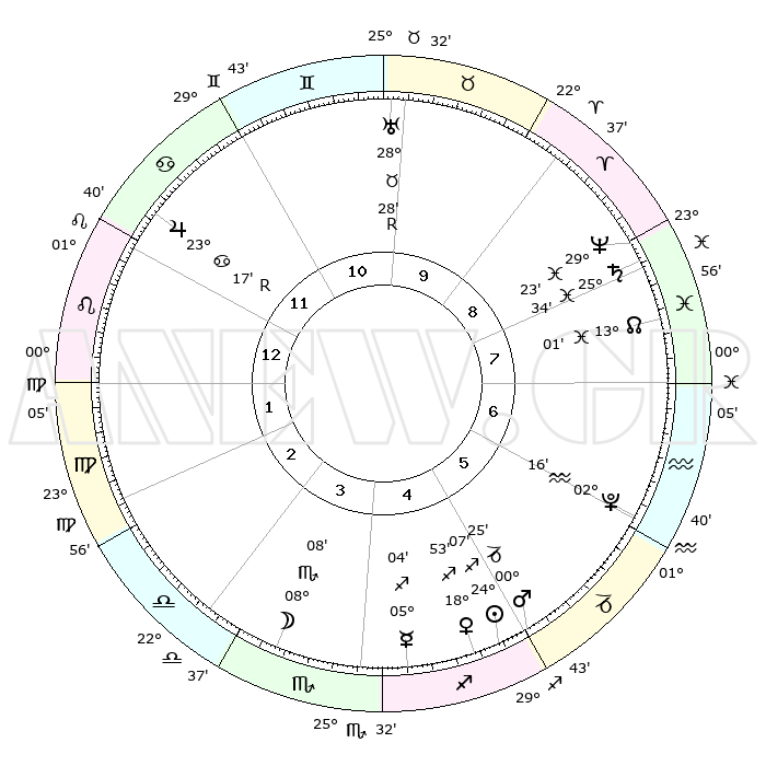| | ΘΕΣΕΙΣ ΠΛΑΝΗΤΩΝ ΑΣΤΡΟΛΟΓΙΚΟΥ ΧΑΡΤΗ ΤΗΣ ΣΤΙΓΜΗΣ ΑΥΤΗΣ | | | | Πλανήτης | Ζώδιο | Μοίρες | Δεκαήμ. | Σε οίκο | Απόκλιση | | Ακμές των οίκων | | Ηλιος | Τοξότης | 23°03' | Τρίτο | 5 | 23 S 15 | | 1ος | 15°11' | Λέων | | Σελήνη | Ζυγός | 25°41' | Τρίτο | 3 | 13 S 06 | | 2ος | 07°31' | Παρθένος | | Ερμής | Τοξότης | 03°40' | Πρώτο | 4 | 19 S 21 | | 3ος | 04°35' | Ζυγός | | Αφροδίτη | Τοξότης | 17°34' | Δεύτερο | 5 | 22 S 41 | | 4ος | 07°00' | Σκορπιός | | Αρης | Τοξότης | 29°37' | Τρίτο | 5 | 24 S 12 | | 5ος | 12°16' | Τοξότης | | Δίας | Καρκίνος | 23°23'R | Τρίτο | 12 | 21 N 36 | | 6ος | 15°44' | Αιγόκερως | | Κρόνος | Ιχθείς | 25°32' | Τρίτο | 8 | 03 S 54 | | 7ος | 15°11' | Υδροχόος | | Ουρανός | Ταύρος | 28°30'R | Τρίτο | 10 | 19 N 37 | | 8ος | 07°31' | Ιχθείς | | Ποσειδώνας | Ιχθείς | 29°23' | Τρίτο | 8 | 01 S 29 | | 9ος | 04°35' | Κριός | | Πλούτωνας | Υδροχόος | 02°14' | Πρώτο | 6 | 23 S 20 | | 10ος | 07°00' | Ταύρος | | Β. Δεσμός | Ιχθείς | 13°05' | Δεύτερο | 8 | 06 S 39 | | 11ος | 12°16' | Δίδυμοι | | Ωροσκόπος | Λέων | 15°11' | Δεύτερο | | | 12ος | 15°44' | Καρκίνος | | Μεσουράνημα | Ταύρος | 07°00' | Πρώτο | | | |
