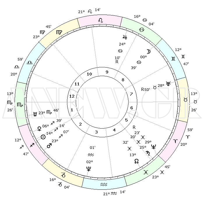 | | ΘΕΣΕΙΣ ΠΛΑΝΗΤΩΝ ΑΣΤΡΟΛΟΓΙΚΟΥ ΧΑΡΤΗ ΤΗΣ ΣΤΙΓΜΗΣ ΑΥΤΗΣ | | | | Πλανήτης | Ζώδιο | Μοίρες | Δεκαήμ. | Σε οίκο | Απόκλιση | | Ακμές των οίκων | | Ηλιος | Τοξότης | 14°12' | Δεύτερο | 2 | 22 S 30 | | 1ος | 03°34' | Σκορπιός | | Σελήνη | Καρκίνος | 00°08' | Πρώτο | 8 | 28 N 14 | | 2ος | 02°12' | Τοξότης | | Ερμής | Σκορπιός | 23°45' | Τρίτο | 1 | 16 S 19 | | 3ος | 04°28' | Αιγόκερως | | Αφροδίτη | Τοξότης | 06°37' | Πρώτο | 2 | 20 S 54 | | 4ος | 08°54' | Υδροχόος | | Αρης | Τοξότης | 23°05' | Τρίτο | 2 | 23 S 57 | | 5ος | 11°46' | Ιχθείς | | Δίας | Καρκίνος | 24°10'R | Τρίτο | 9 | 21 N 27 | | 6ος | 10°06' | Κριός | | Κρόνος | Ιχθείς | 25°20' | Τρίτο | 5 | 04 S 01 | | 7ος | 03°35' | Ταύρος | | Ουρανός | Ταύρος | 28°50'R | Τρίτο | 7 | 19 N 42 | | 8ος | 02°12' | Δίδυμοι | | Ποσειδώνας | Ιχθείς | 29°23'R | Τρίτο | 5 | 01 S 29 | | 9ος | 04°28' | Καρκίνος | | Πλούτωνας | Υδροχόος | 02°01' | Πρώτο | 3 | 23 S 22 | | 10ος | 08°54' | Λέων | | Β. Δεσμός | Ιχθείς | 13°32' | Δεύτερο | 5 | 06 S 28 | | 11ος | 11°46' | Παρθένος | | Ωροσκόπος | Σκορπιός | 03°34' | Πρώτο | | | 12ος | 10°06' | Ζυγός | | Μεσουράνημα | Λέων | 08°54' | Πρώτο | | | |
