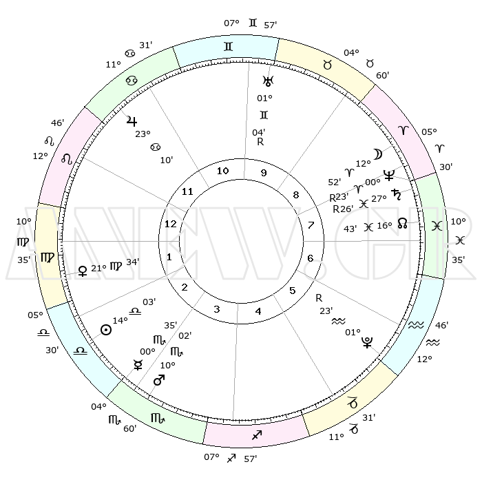 | ΘΕΣΕΙΣ ΠΛΑΝΗΤΩΝ ΑΣΤΡΟΛΟΓΙΚΟΥ ΧΑΡΤΗ ΤΗΣ ΣΤΙΓΜΗΣ ΑΥΤΗΣ | | Πλανήτης | Ζώδιο | Μοίρες | Δεκαήμ. | Σε οίκο | Απόκλιση | | Ακμές των οίκων | Ηλιος | Ζυγός | 13°58' | Δεύτερο | 3 | 05 S 30 | | 1ος | 12°07' | Λέων | Σελήνη | Κριός | 11°24' | Δεύτερο | 9 | 06 N 24 | | 2ος | 04°09' | Παρθένος | Ερμής | Σκορπιός | 00°26' | Πρώτο | 3 | 12 S 23 | | 3ος | 00°49' | Ζυγός | Αφροδίτη | Παρθένος | 21°27' | Τρίτο | 2 | 04 N 41 | | 4ος | 03°03' | Σκορπιός | Αρης | Σκορπιός | 09°58' | Πρώτο | 4 | 14 S 56 | | 5ος | 08°31' | Τοξότης | Δίας | Καρκίνος | 23°09' | Τρίτο | 12 | 21 N 29 | | 6ος | 12°23' | Αιγόκερως | Κρόνος | Ιχθείς | 27°27'R | Τρίτο | 8 | 03 S 19 | | 7ος | 12°07' | Υδροχόος | Ουρανός | Δίδυμοι | 01°04'R | Πρώτο | 10 | 20 N 10 | | 8ος | 04°09' | Ιχθείς | Ποσειδώνας | Κριός | 00°23'R | Πρώτο | 8 | 01 S 06 | | 9ος | 00°49' | Κριός | Πλούτωνας | Υδροχόος | 01°23'R | Πρώτο | 6 | 23 S 32 | | 10ος | 03°03' | Ταύρος | Β. Δεσμός | Ιχθείς | 16°44' | Δεύτερο | 8 | 05 S 14 | | 11ος | 08°31' | Δίδυμοι | Ωροσκόπος | Λέων | 12°07' | Δεύτερο | | | 12ος | 12°23' | Καρκίνος | Μεσουράνημα | Ταύρος | 03°03' | Πρώτο | | | |