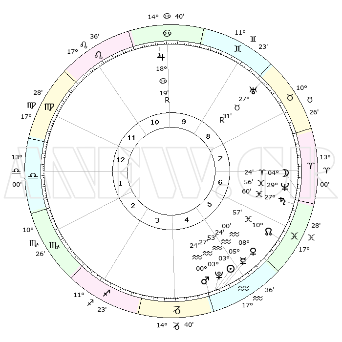 | | ΘΕΣΕΙΣ ΠΛΑΝΗΤΩΝ ΑΣΤΡΟΛΟΓΙΚΟΥ ΧΑΡΤΗ ΤΗΣ ΣΤΙΓΜΗΣ ΑΥΤΗΣ | | | | Πλανήτης | Ζώδιο | Μοίρες | Δεκαήμ. | Σε οίκο | Απόκλιση | | Ακμές των οίκων | | Ηλιος | Υδροχόος | 03°49' | Πρώτο | 5 | 19 S 18 | | 1ος | 23°09' | Παρθένος | | Σελήνη | Κριός | 03°29' | Πρώτο | 7 | 03 N 20 | | 2ος | 19°12' | Ζυγός | | Ερμής | Υδροχόος | 05°17' | Πρώτο | 5 | 20 S 58 | | 3ος | 19°22' | Σκορπιός | | Αφροδίτη | Υδροχόος | 07°55' | Πρώτο | 5 | 19 S 27 | | 4ος | 22°18' | Τοξότης | | Αρης | Υδροχόος | 00°21' | Πρώτο | 5 | 21 S 04 | | 5ος | 25°24' | Αιγόκερως | | Δίας | Καρκίνος | 18°20'R | Δεύτερο | 10 | 22 N 28 | | 6ος | 26°06' | Υδροχόος | | Κρόνος | Ιχθείς | 27°59' | Τρίτο | 7 | 02 S 49 | | 7ος | 23°09' | Ιχθείς | | Ουρανός | Ταύρος | 27°31'R | Τρίτο | 9 | 19 N 25 | | 8ος | 19°12' | Κριός | | Ποσειδώνας | Ιχθείς | 29°56' | Τρίτο | 7 | 01 S 14 | | 9ος | 19°22' | Ταύρος | | Πλούτωνας | Υδροχόος | 03°26' | Πρώτο | 5 | 23 S 04 | | 10ος | 22°18' | Δίδυμοι | | Β. Δεσμός | Ιχθείς | 10°58' | Δεύτερο | 6 | 07 S 27 | | 11ος | 25°24' | Καρκίνος | | Ωροσκόπος | Παρθένος | 23°09' | Τρίτο | | | 12ος | 26°06' | Λέων | | Μεσουράνημα | Δίδυμοι | 22°18' | Τρίτο | | | |