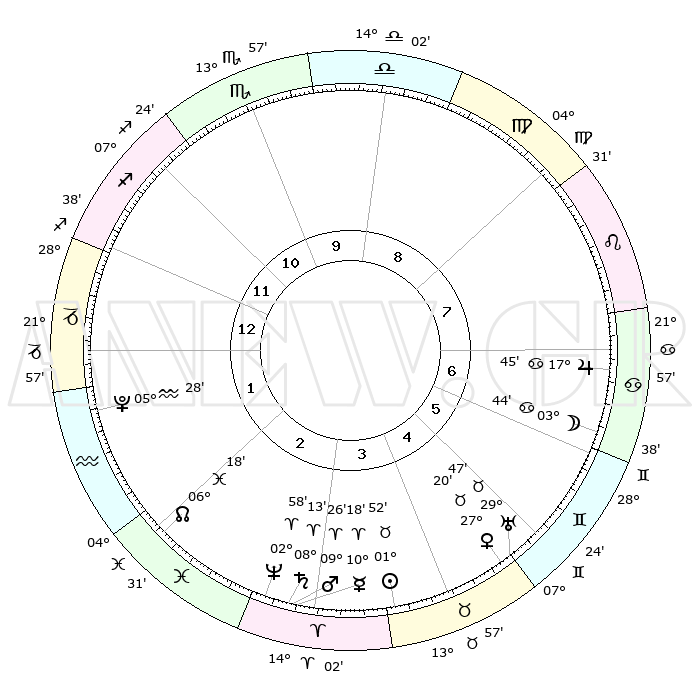 | | ΘΕΣΕΙΣ ΠΛΑΝΗΤΩΝ ΑΣΤΡΟΛΟΓΙΚΟΥ ΧΑΡΤΗ ΤΗΣ ΣΤΙΓΜΗΣ ΑΥΤΗΣ | | | | Πλανήτης | Ζώδιο | Μοίρες | Δεκαήμ. | Σε οίκο | Απόκλιση | | Ακμές των οίκων | | Ηλιος | Ταύρος | 01°47' | Πρώτο | 4 | 12 N 06 | | 1ος | 25°52' | Τοξότης | | Σελήνη | Καρκίνος | 02°40' | Πρώτο | 7 | 28 N 01 | | 2ος | 01°60' | Υδροχόος | | Ερμής | Κριός | 10°11' | Δεύτερο | 3 | 01 N 40 | | 3ος | 11°38' | Ιχθείς | | Αφροδίτη | Ταύρος | 27°14' | Τρίτο | 5 | 20 N 01 | | 4ος | 16°12' | Κριός | | Αρης | Κριός | 09°23' | Πρώτο | 3 | 02 N 51 | | 5ος | 13°11' | Ταύρος | | Δίας | Καρκίνος | 17°44' | Δεύτερο | 7 | 22 N 38 | | 6ος | 05°17' | Δίδυμοι | | Κρόνος | Κριός | 08°13' | Πρώτο | 3 | 01 N 16 | | 7ος | 25°52' | Δίδυμοι | | Ουρανός | Ταύρος | 29°47' | Τρίτο | 5 | 19 N 56 | | 8ος | 01°60' | Λέων | | Ποσειδώνας | Κριός | 02°58' | Πρώτο | 3 | 00 S 02 | | 9ος | 11°38' | Παρθένος | | Πλούτωνας | Υδροχόος | 05°27' | Πρώτο | 2 | 22 S 48 | | 10ος | 16°12' | Ζυγός | | Β. Δεσμός | Ιχθείς | 06°18' | Πρώτο | 2 | 09 S 12 | | 11ος | 13°11' | Σκορπιός | | Ωροσκόπος | Τοξότης | 25°52' | Τρίτο | | | 12ος | 05°17' | Τοξότης | | Μεσουράνημα | Ζυγός | 16°12' | Δεύτερο | | | |