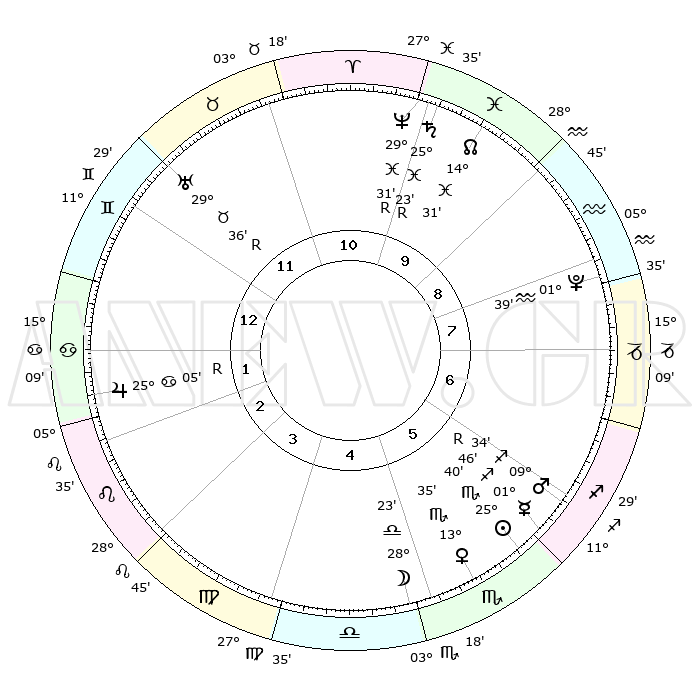 | | ΘΕΣΕΙΣ ΠΛΑΝΗΤΩΝ ΑΣΤΡΟΛΟΓΙΚΟΥ ΧΑΡΤΗ ΤΗΣ ΣΤΙΓΜΗΣ ΑΥΤΗΣ | | | | Πλανήτης | Ζώδιο | Μοίρες | Δεκαήμ. | Σε οίκο | Απόκλιση | | Ακμές των οίκων | | Ηλιος | Σκορπιός | 25°34' | Τρίτο | 6 | 19 S 09 | | 1ος | 15°40' | Δίδυμοι | | Σελήνη | Ζυγός | 27°19' | Τρίτο | 5 | 13 S 37 | | 2ος | 07°50' | Καρκίνος | | Ερμής | Τοξότης | 01°52'R | Πρώτο | 6 | 20 S 54 | | 3ος | 29°04' | Καρκίνος | | Αφροδίτη | Σκορπιός | 13°28' | Δεύτερο | 6 | 14 S 48 | | 4ος | 23°21' | Λέων | | Αρης | Τοξότης | 09°30' | Πρώτο | 6 | 22 S 25 | | 5ος | 24°43' | Παρθένος | | Δίας | Καρκίνος | 25°05'R | Τρίτο | 2 | 21 N 14 | | 6ος | 04°52' | Σκορπιός | | Κρόνος | Ιχθείς | 25°23'R | Τρίτο | 11 | 04 S 03 | | 7ος | 15°40' | Τοξότης | | Ουρανός | Ταύρος | 29°36'R | Τρίτο | 12 | 19 N 51 | | 8ος | 07°50' | Αιγόκερως | | Ποσειδώνας | Ιχθείς | 29°31'R | Τρίτο | 11 | 01 S 26 | | 9ος | 29°04' | Αιγόκερως | | Πλούτωνας | Υδροχόος | 01°39' | Πρώτο | 9 | 23 S 28 | | 10ος | 23°21' | Υδροχόος | | Β. Δεσμός | Ιχθείς | 14°31' | Δεύτερο | 10 | 06 S 06 | | 11ος | 24°43' | Ιχθείς | | Ωροσκόπος | Δίδυμοι | 15°40' | Δεύτερο | | | 12ος | 04°52' | Ταύρος | | Μεσουράνημα | Υδροχόος | 23°21' | Τρίτο | | | |