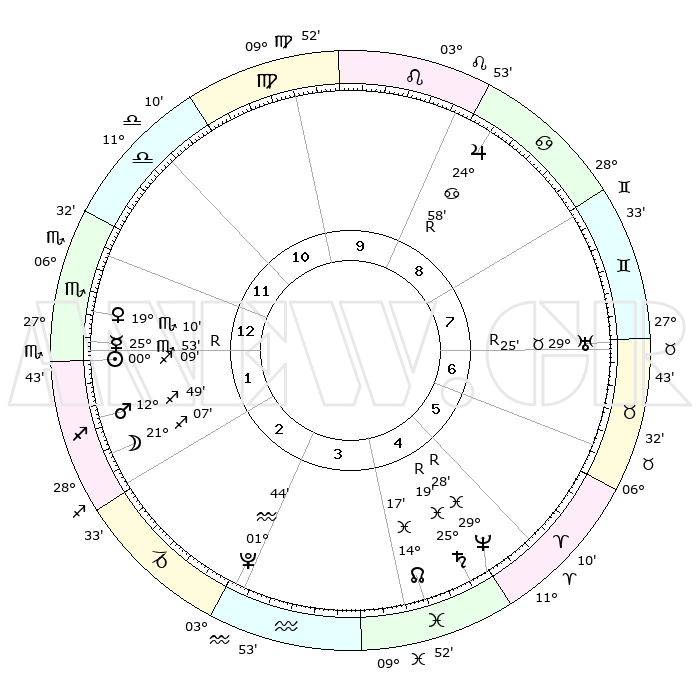 | | ΘΕΣΕΙΣ ΠΛΑΝΗΤΩΝ ΑΣΤΡΟΛΟΓΙΚΟΥ ΧΑΡΤΗ ΤΗΣ ΣΤΙΓΜΗΣ ΑΥΤΗΣ | | | | Πλανήτης | Ζώδιο | Μοίρες | Δεκαήμ. | Σε οίκο | Απόκλιση | | Ακμές των οίκων | | Ηλιος | Τοξότης | 00°06' | Πρώτο | 1 | 20 S 10 | | 1ος | 13°13' | Σκορπιός | | Σελήνη | Τοξότης | 20°32' | Τρίτο | 2 | 28 S 04 | | 2ος | 12°33' | Τοξότης | | Ερμής | Σκορπιός | 25°57'R | Τρίτο | 1 | 18 S 09 | | 3ος | 15°49' | Αιγόκερως | | Αφροδίτη | Σκορπιός | 19°06' | Δεύτερο | 1 | 16 S 32 | | 4ος | 20°58' | Υδροχόος | | Αρης | Τοξότης | 12°47' | Δεύτερο | 2 | 22 S 54 | | 5ος | 23°29' | Ιχθείς | | Δίας | Καρκίνος | 24°58'R | Τρίτο | 9 | 21 N 16 | | 6ος | 20°45' | Κριός | | Κρόνος | Ιχθείς | 25°19'R | Τρίτο | 5 | 04 S 04 | | 7ος | 13°14' | Ταύρος | | Ουρανός | Ταύρος | 29°25'R | Τρίτο | 7 | 19 N 49 | | 8ος | 12°33' | Δίδυμοι | | Ποσειδώνας | Ιχθείς | 29°28'R | Τρίτο | 5 | 01 S 28 | | 9ος | 15°49' | Καρκίνος | | Πλούτωνας | Υδροχόος | 01°44' | Πρώτο | 3 | 23 S 26 | | 10ος | 20°58' | Λέων | | Β. Δεσμός | Ιχθείς | 14°17' | Δεύτερο | 4 | 06 S 11 | | 11ος | 23°29' | Παρθένος | | Ωροσκόπος | Σκορπιός | 13°13' | Δεύτερο | | | 12ος | 20°45' | Ζυγός | | Μεσουράνημα | Λέων | 20°58' | Τρίτο | | | |