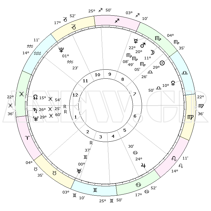 | ΘΕΣΕΙΣ ΠΛΑΝΗΤΩΝ ΑΣΤΡΟΛΟΓΙΚΟΥ ΧΑΡΤΗ ΤΗΣ ΣΤΙΓΜΗΣ ΑΥΤΗΣ | | Πλανήτης | Ζώδιο | Μοίρες | Δεκαήμ. | Σε οίκο | Απόκλιση | | Ακμές των οίκων | Ηλιος | Ζυγός | 29°20' | Τρίτο | 9 | 11 S 14 | | 1ος | 05°11' | Υδροχόος | Σελήνη | Σκορπιός | 10°00' | Δεύτερο | 9 | 18 S 41 | | 2ος | 20°03' | Ιχθείς | Ερμής | Σκορπιός | 22°01' | Τρίτο | 9 | 20 S 37 | | 3ος | 27°37' | Κριός | Αφροδίτη | Ζυγός | 10°43' | Δεύτερο | 8 | 02 S 50 | | 4ος | 25°13' | Ταύρος | Αρης | Σκορπιός | 20°45' | Τρίτο | 9 | 18 S 14 | | 5ος | 17°38' | Δίδυμοι | Δίας | Καρκίνος | 24°30' | Τρίτο | 6 | 21 N 17 | | 6ος | 09°17' | Καρκίνος | Κρόνος | Ιχθείς | 26°25'R | Τρίτο | 2 | 03 S 42 | | 7ος | 05°11' | Λέων | Ουρανός | Δίδυμοι | 00°37'R | Πρώτο | 4 | 20 N 04 | | 8ος | 20°03' | Παρθένος | Ποσειδώνας | Ιχθείς | 29°60'R | Τρίτο | 2 | 01 S 16 | | 9ος | 27°37' | Ζυγός | Πλούτωνας | Υδροχόος | 01°23' | Πρώτο | 12 | 23 S 32 | | 10ος | 25°13' | Σκορπιός | Β. Δεσμός | Ιχθείς | 15°54' | Δεύτερο | 1 | 05 S 33 | | 11ος | 17°38' | Τοξότης | Ωροσκόπος | Υδροχόος | 05°11' | Πρώτο | | | 12ος | 09°17' | Αιγόκερως | Μεσουράνημα | Σκορπιός | 25°13' | Τρίτο | | | |