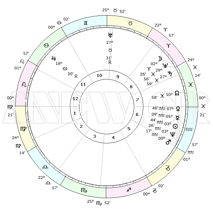 | | ΘΕΣΕΙΣ ΠΛΑΝΗΤΩΝ ΑΣΤΡΟΛΟΓΙΚΟΥ ΧΑΡΤΗ ΤΗΣ ΣΤΙΓΜΗΣ ΑΥΤΗΣ | | | | Πλανήτης | Ζώδιο | Μοίρες | Δεκαήμ. | Σε οίκο | Απόκλιση | | Ακμές των οίκων | | Ηλιος | Υδροχόος | 03°40' | Πρώτο | 6 | 19 S 20 | | 1ος | 11°01' | Λέων | | Σελήνη | Κριός | 01°33' | Πρώτο | 9 | 02 N 25 | | 2ος | 02°57' | Παρθένος | | Ερμής | Υδροχόος | 05°02' | Πρώτο | 6 | 21 S 01 | | 3ος | 29°29' | Παρθένος | | Αφροδίτη | Υδροχόος | 07°44' | Πρώτο | 6 | 19 S 30 | | 4ος | 01°38' | Σκορπιός | | Αρης | Υδροχόος | 00°14' | Πρώτο | 6 | 21 S 05 | | 5ος | 07°10' | Τοξότης | | Δίας | Καρκίνος | 18°21'R | Δεύτερο | 12 | 22 N 28 | | 6ος | 11°11' | Αιγόκερως | | Κρόνος | Ιχθείς | 27°58' | Τρίτο | 8 | 02 S 49 | | 7ος | 11°01' | Υδροχόος | | Ουρανός | Ταύρος | 27°31'R | Τρίτο | 10 | 19 N 25 | | 8ος | 02°57' | Ιχθείς | | Ποσειδώνας | Ιχθείς | 29°56' | Τρίτο | 9 | 01 S 14 | | 9ος | 29°29' | Ιχθείς | | Πλούτωνας | Υδροχόος | 03°26' | Πρώτο | 6 | 23 S 04 | | 10ος | 01°38' | Ταύρος | | Β. Δεσμός | Ιχθείς | 10°58' | Δεύτερο | 8 | 07 S 27 | | 11ος | 07°10' | Δίδυμοι | | Ωροσκόπος | Λέων | 11°01' | Δεύτερο | | | 12ος | 11°11' | Καρκίνος | | Μεσουράνημα | Ταύρος | 01°38' | Πρώτο | | | |