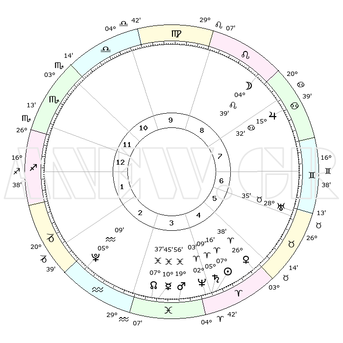 | | ΘΕΣΕΙΣ ΠΛΑΝΗΤΩΝ ΑΣΤΡΟΛΟΓΙΚΟΥ ΧΑΡΤΗ ΤΗΣ ΣΤΙΓΜΗΣ ΑΥΤΗΣ | | | | Πλανήτης | Ζώδιο | Μοίρες | Δεκαήμ. | Σε οίκο | Απόκλιση | | Ακμές των οίκων | | Ηλιος | Κριός | 07°12' | Πρώτο | 4 | 02 N 51 | | 1ος | 27°48' | Σκορπιός | | Σελήνη | Λέων | 03°48' | Πρώτο | 8 | 22 N 13 | | 2ος | 28°39' | Τοξότης | | Ερμής | Ιχθείς | 10°43' | Δεύτερο | 4 | 08 S 05 | | 3ος | 03°59' | Υδροχόος | | Αφροδίτη | Κριός | 26°34' | Τρίτο | 5 | 09 N 41 | | 4ος | 09°58' | Ιχθείς | | Αρης | Ιχθείς | 19°54' | Δεύτερο | 4 | 04 S 59 | | 5ος | 11°16' | Κριός | | Δίας | Καρκίνος | 15°32' | Δεύτερο | 8 | 22 N 54 | | 6ος | 06°37' | Ταύρος | | Κρόνος | Κριός | 05°09' | Πρώτο | 4 | 00 N 05 | | 7ος | 27°48' | Ταύρος | | Ουρανός | Ταύρος | 28°35' | Τρίτο | 7 | 19 N 40 | | 8ος | 28°39' | Δίδυμοι | | Ποσειδώνας | Κριός | 02°03' | Πρώτο | 4 | 00 S 23 | | 9ος | 03°59' | Λέων | | Πλούτωνας | Υδροχόος | 05°09' | Πρώτο | 3 | 22 S 48 | | 10ος | 09°58' | Παρθένος | | Β. Δεσμός | Ιχθείς | 07°37' | Πρώτο | 3 | 08 S 42 | | 11ος | 11°16' | Ζυγός | | Ωροσκόπος | Σκορπιός | 27°48' | Τρίτο | | | 12ος | 06°37' | Σκορπιός | | Μεσουράνημα | Παρθένος | 09°58' | Πρώτο | | | |
