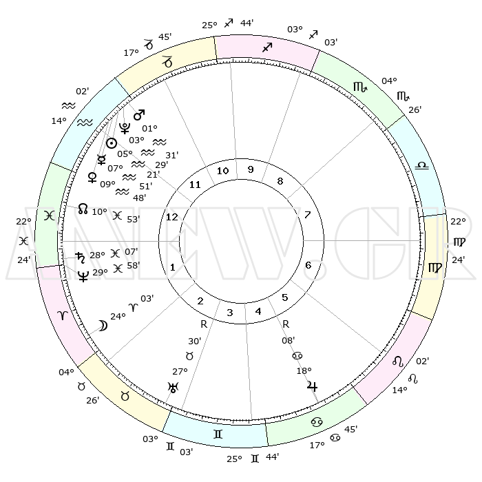 | | ΘΕΣΕΙΣ ΠΛΑΝΗΤΩΝ ΑΣΤΡΟΛΟΓΙΚΟΥ ΧΑΡΤΗ ΤΗΣ ΣΤΙΓΜΗΣ ΑΥΤΗΣ | | | | Πλανήτης | Ζώδιο | Μοίρες | Δεκαήμ. | Σε οίκο | Απόκλιση | | Ακμές των οίκων | | Ηλιος | Υδροχόος | 05°16' | Πρώτο | 12 | 18 S 57 | | 1ος | 12°43' | Υδροχόος | | Σελήνη | Κριός | 23°02' | Τρίτο | 2 | 12 N 17 | | 2ος | 28°17' | Ιχθείς | | Ερμής | Υδροχόος | 07°44' | Πρώτο | 12 | 20 S 21 | | 3ος | 04°27' | Ταύρος | | Αφροδίτη | Υδροχόος | 09°43' | Πρώτο | 12 | 19 S 00 | | 4ος | 00°55' | Δίδυμοι | | Αρης | Υδροχόος | 01°28' | Πρώτο | 12 | 20 S 49 | | 5ος | 22°58' | Δίδυμοι | | Δίας | Καρκίνος | 18°09'R | Δεύτερο | 6 | 22 N 30 | | 6ος | 15°03' | Καρκίνος | | Κρόνος | Ιχθείς | 28°07' | Τρίτο | 1 | 02 S 45 | | 7ος | 12°43' | Λέων | | Ουρανός | Ταύρος | 27°30'R | Τρίτο | 3 | 19 N 25 | | 8ος | 28°17' | Παρθένος | | Ποσειδώνας | Ιχθείς | 29°58' | Τρίτο | 2 | 01 S 13 | | 9ος | 04°27' | Σκορπιός | | Πλούτωνας | Υδροχόος | 03°29' | Πρώτο | 12 | 23 S 04 | | 10ος | 00°55' | Τοξότης | | Β. Δεσμός | Ιχθείς | 10°53' | Δεύτερο | 1 | 07 S 29 | | 11ος | 22°58' | Τοξότης | | Ωροσκόπος | Υδροχόος | 12°43' | Δεύτερο | | | 12ος | 15°03' | Αιγόκερως | | Μεσουράνημα | Τοξότης | 00°55' | Πρώτο | | | |