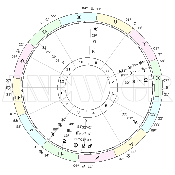 | | ΘΕΣΕΙΣ ΠΛΑΝΗΤΩΝ ΑΣΤΡΟΛΟΓΙΚΟΥ ΧΑΡΤΗ ΤΗΣ ΣΤΙΓΜΗΣ ΑΥΤΗΣ | | | | Πλανήτης | Ζώδιο | Μοίρες | Δεκαήμ. | Σε οίκο | Απόκλιση | | Ακμές των οίκων | | Ηλιος | Σκορπιός | 25°45' | Τρίτο | 4 | 19 S 11 | | 1ος | 10°08' | Λέων | | Σελήνη | Ζυγός | 29°23' | Τρίτο | 3 | 14 S 29 | | 2ος | 01°58' | Παρθένος | | Ερμής | Τοξότης | 01°39'R | Πρώτο | 4 | 20 S 48 | | 3ος | 28°23' | Παρθένος | | Αφροδίτη | Σκορπιός | 13°42' | Δεύτερο | 4 | 14 S 52 | | 4ος | 00°28' | Σκορπιός | | Αρης | Τοξότης | 09°38' | Πρώτο | 5 | 22 S 26 | | 5ος | 06°04' | Τοξότης | | Δίας | Καρκίνος | 25°05'R | Τρίτο | 12 | 21 N 14 | | 6ος | 10°12' | Αιγόκερως | | Κρόνος | Ιχθείς | 25°23'R | Τρίτο | 8 | 04 S 03 | | 7ος | 10°08' | Υδροχόος | | Ουρανός | Ταύρος | 29°36'R | Τρίτο | 10 | 19 N 51 | | 8ος | 01°59' | Ιχθείς | | Ποσειδώνας | Ιχθείς | 29°31'R | Τρίτο | 9 | 01 S 27 | | 9ος | 28°23' | Ιχθείς | | Πλούτωνας | Υδροχόος | 01°39' | Πρώτο | 6 | 23 S 28 | | 10ος | 00°28' | Ταύρος | | Β. Δεσμός | Ιχθείς | 14°30' | Δεύτερο | 8 | 06 S 06 | | 11ος | 06°04' | Δίδυμοι | | Ωροσκόπος | Λέων | 10°08' | Δεύτερο | | | 12ος | 10°12' | Καρκίνος | | Μεσουράνημα | Ταύρος | 00°28' | Πρώτο | | | |
