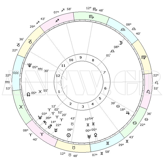 | | ΘΕΣΕΙΣ ΠΛΑΝΗΤΩΝ ΑΣΤΡΟΛΟΓΙΚΟΥ ΧΑΡΤΗ ΤΗΣ ΣΤΙΓΜΗΣ ΑΥΤΗΣ | | | | Πλανήτης | Ζώδιο | Μοίρες | Δεκαήμ. | Σε οίκο | Απόκλιση | | Ακμές των οίκων | | Ηλιος | Ταύρος | 08°25' | Πρώτο | 7 | 14 N 18 | | 1ος | 03°00' | Σκορπιός | | Σελήνη | Ζυγός | 04°01' | Πρώτο | 11 | 03 S 42 | | 2ος | 01°36' | Τοξότης | | Ερμής | Κριός | 21°46' | Τρίτο | 6 | 06 N 29 | | 3ος | 03°49' | Αιγόκερως | | Αφροδίτη | Δίδυμοι | 05°30' | Πρώτο | 8 | 22 N 00 | | 4ος | 08°13' | Υδροχόος | | Αρης | Κριός | 14°37' | Δεύτερο | 6 | 04 N 56 | | 5ος | 11°05' | Ιχθείς | | Δίας | Καρκίνος | 18°36' | Δεύτερο | 9 | 22 N 32 | | 6ος | 09°28' | Κριός | | Κρόνος | Κριός | 08°60' | Πρώτο | 5 | 01 N 34 | | 7ος | 03°00' | Ταύρος | | Ουρανός | Δίδυμοι | 00°09' | Πρώτο | 7 | 20 N 01 | | 8ος | 01°36' | Δίδυμοι | | Ποσειδώνας | Κριός | 03°11' | Πρώτο | 5 | 00 N 03 | | 9ος | 03°49' | Καρκίνος | | Πλούτωνας | Υδροχόος | 05°30' | Πρώτο | 3 | 22 S 48 | | 10ος | 08°13' | Λέων | | Β. Δεσμός | Ιχθείς | 05°56' | Πρώτο | 4 | 09 S 20 | | 11ος | 11°05' | Παρθένος | | Ωροσκόπος | Σκορπιός | 03°00' | Πρώτο | | | 12ος | 09°28' | Ζυγός | | Μεσουράνημα | Λέων | 08°13' | Πρώτο | | | |