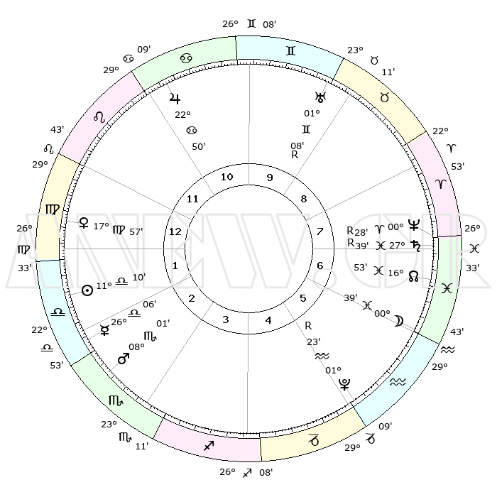 | ΘΕΣΕΙΣ ΠΛΑΝΗΤΩΝ ΑΣΤΡΟΛΟΓΙΚΟΥ ΧΑΡΤΗ ΤΗΣ ΣΤΙΓΜΗΣ ΑΥΤΗΣ | | Πλανήτης | Ζώδιο | Μοίρες | Δεκαήμ. | Σε οίκο | Απόκλιση | | Ακμές των οίκων | Ηλιος | Ζυγός | 11°04' | Δεύτερο | 2 | 04 S 23 | | 1ος | 00°41' | Παρθένος | Σελήνη | Υδροχόος | 29°26' | Τρίτο | 6 | 13 S 15 | | 2ος | 24°36' | Παρθένος | Ερμής | Ζυγός | 25°58' | Τρίτο | 3 | 10 S 28 | | 3ος | 23°20' | Ζυγός | Αφροδίτη | Παρθένος | 17°50' | Δεύτερο | 1 | 06 N 03 | | 4ος | 26°16' | Σκορπιός | Αρης | Σκορπιός | 07°57' | Πρώτο | 3 | 14 S 16 | | 5ος | 00°24' | Αιγόκερως | Δίας | Καρκίνος | 22°50' | Τρίτο | 11 | 21 N 32 | | 6ος | 02°18' | Υδροχόος | Κρόνος | Ιχθείς | 27°40'R | Τρίτο | 8 | 03 S 14 | | 7ος | 00°41' | Ιχθείς | Ουρανός | Δίδυμοι | 01°08'R | Πρώτο | 10 | 20 N 11 | | 8ος | 24°36' | Ιχθείς | Ποσειδώνας | Κριός | 00°28'R | Πρώτο | 8 | 01 S 05 | | 9ος | 23°20' | Κριός | Πλούτωνας | Υδροχόος | 01°23'R | Πρώτο | 5 | 23 S 32 | | 10ος | 26°16' | Ταύρος | Β. Δεσμός | Ιχθείς | 16°53' | Δεύτερο | 7 | 05 S 11 | | 11ος | 00°24' | Καρκίνος | Ωροσκόπος | Παρθένος | 00°41' | Πρώτο | | | 12ος | 02°18' | Λέων | Μεσουράνημα | Ταύρος | 26°16' | Τρίτο | | | |
