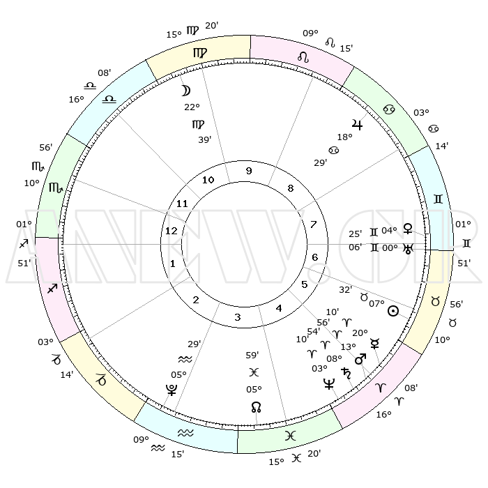 | | ΘΕΣΕΙΣ ΠΛΑΝΗΤΩΝ ΑΣΤΡΟΛΟΓΙΚΟΥ ΧΑΡΤΗ ΤΗΣ ΣΤΙΓΜΗΣ ΑΥΤΗΣ | | | | Πλανήτης | Ζώδιο | Μοίρες | Δεκαήμ. | Σε οίκο | Απόκλιση | | Ακμές των οίκων | | Ηλιος | Ταύρος | 07°29' | Πρώτο | 6 | 14 N 00 | | 1ος | 13°41' | Σκορπιός | | Σελήνη | Παρθένος | 21°51' | Τρίτο | 10 | 02 N 03 | | 2ος | 13°03' | Τοξότης | | Ερμής | Κριός | 20°03' | Τρίτο | 5 | 05 N 46 | | 3ος | 16°22' | Αιγόκερως | | Αφροδίτη | Δίδυμοι | 04°21' | Πρώτο | 7 | 21 N 45 | | 4ος | 21°33' | Υδροχόος | | Αρης | Κριός | 13°53' | Δεύτερο | 5 | 04 N 38 | | 5ος | 24°03' | Ιχθείς | | Δίας | Καρκίνος | 18°28' | Δεύτερο | 9 | 22 N 33 | | 6ος | 21°15' | Κριός | | Κρόνος | Κριός | 08°53' | Πρώτο | 5 | 01 N 32 | | 7ος | 13°41' | Ταύρος | | Ουρανός | Δίδυμοι | 00°06' | Πρώτο | 7 | 20 N 00 | | 8ος | 13°03' | Δίδυμοι | | Ποσειδώνας | Κριός | 03°10' | Πρώτο | 5 | 00 N 03 | | 9ος | 16°22' | Καρκίνος | | Πλούτωνας | Υδροχόος | 05°29' | Πρώτο | 3 | 22 S 48 | | 10ος | 21°33' | Λέων | | Β. Δεσμός | Ιχθείς | 05°59' | Πρώτο | 4 | 09 S 19 | | 11ος | 24°03' | Παρθένος | | Ωροσκόπος | Σκορπιός | 13°41' | Δεύτερο | | | 12ος | 21°15' | Ζυγός | | Μεσουράνημα | Λέων | 21°33' | Τρίτο | | | |
