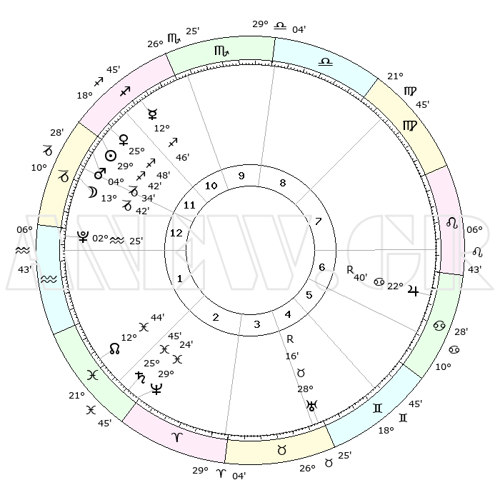 | | ΘΕΣΕΙΣ ΠΛΑΝΗΤΩΝ ΑΣΤΡΟΛΟΓΙΚΟΥ ΧΑΡΤΗ ΤΗΣ ΣΤΙΓΜΗΣ ΑΥΤΗΣ | | | | Πλανήτης | Ζώδιο | Μοίρες | Δεκαήμ. | Σε οίκο | Απόκλιση | | Ακμές των οίκων | | Ηλιος | Τοξότης | 29°39' | Τρίτο | 12 | 23 S 26 | | 1ος | 12°48' | Αιγόκερως | | Σελήνη | Αιγόκερως | 12°59' | Δεύτερο | 1 | 27 S 04 | | 2ος | 23°13' | Υδροχόος | | Ερμής | Τοξότης | 12°41' | Δεύτερο | 11 | 21 S 35 | | 3ος | 03°26' | Κριός | | Αφροδίτη | Τοξότης | 25°43' | Τρίτο | 12 | 23 S 27 | | 4ος | 05°05' | Ταύρος | | Αρης | Αιγόκερως | 04°31' | Πρώτο | 12 | 24 S 11 | | 5ος | 29°34' | Ταύρος | | Δίας | Καρκίνος | 22°41'R | Τρίτο | 7 | 21 N 44 | | 6ος | 20°49' | Δίδυμοι | | Κρόνος | Ιχθείς | 25°45' | Τρίτο | 2 | 03 S 48 | | 7ος | 12°48' | Καρκίνος | | Ουρανός | Ταύρος | 28°16'R | Τρίτο | 4 | 19 N 35 | | 8ος | 23°13' | Λέων | | Ποσειδώνας | Ιχθείς | 29°24' | Τρίτο | 2 | 01 S 28 | | 9ος | 03°26' | Ζυγός | | Πλούτωνας | Υδροχόος | 02°25' | Πρώτο | 1 | 23 S 17 | | 10ος | 05°05' | Σκορπιός | | Β. Δεσμός | Ιχθείς | 12°44' | Δεύτερο | 2 | 06 S 47 | | 11ος | 29°34' | Σκορπιός | | Ωροσκόπος | Αιγόκερως | 12°48' | Δεύτερο | | | 12ος | 20°49' | Τοξότης | | Μεσουράνημα | Σκορπιός | 05°05' | Πρώτο | | | |
