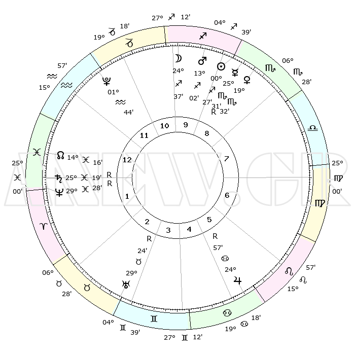 | | ΘΕΣΕΙΣ ΠΛΑΝΗΤΩΝ ΑΣΤΡΟΛΟΓΙΚΟΥ ΧΑΡΤΗ ΤΗΣ ΣΤΙΓΜΗΣ ΑΥΤΗΣ | | | | Πλανήτης | Ζώδιο | Μοίρες | Δεκαήμ. | Σε οίκο | Απόκλιση | | Ακμές των οίκων | | Ηλιος | Τοξότης | 00°23' | Πρώτο | 9 | 20 S 14 | | 1ος | 24°57' | Υδροχόος | | Σελήνη | Τοξότης | 23°59' | Τρίτο | 10 | 28 S 14 | | 2ος | 10°41' | Κριός | | Ερμής | Σκορπιός | 25°35'R | Τρίτο | 9 | 17 S 59 | | 3ος | 14°24' | Ταύρος | | Αφροδίτη | Σκορπιός | 19°28' | Δεύτερο | 9 | 16 S 38 | | 4ος | 09°19' | Δίδυμοι | | Αρης | Τοξότης | 12°60' | Δεύτερο | 10 | 22 S 56 | | 5ος | 01°03' | Καρκίνος | | Δίας | Καρκίνος | 24°57'R | Τρίτο | 6 | 21 N 16 | | 6ος | 24°07' | Καρκίνος | | Κρόνος | Ιχθείς | 25°19'R | Τρίτο | 1 | 04 S 04 | | 7ος | 24°57' | Λέων | | Ουρανός | Ταύρος | 29°24'R | Τρίτο | 3 | 19 N 49 | | 8ος | 10°41' | Ζυγός | | Ποσειδώνας | Ιχθείς | 29°28'R | Τρίτο | 1 | 01 S 28 | | 9ος | 14°24' | Σκορπιός | | Πλούτωνας | Υδροχόος | 01°44' | Πρώτο | 12 | 23 S 26 | | 10ος | 09°19' | Τοξότης | | Β. Δεσμός | Ιχθείς | 14°16' | Δεύτερο | 1 | 06 S 12 | | 11ος | 01°03' | Αιγόκερως | | Ωροσκόπος | Υδροχόος | 24°57' | Τρίτο | | | 12ος | 24°07' | Αιγόκερως | | Μεσουράνημα | Τοξότης | 09°19' | Πρώτο | | | |