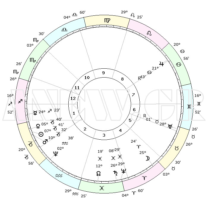 | | ΘΕΣΕΙΣ ΠΛΑΝΗΤΩΝ ΑΣΤΡΟΛΟΓΙΚΟΥ ΧΑΡΤΗ ΤΗΣ ΣΤΙΓΜΗΣ ΑΥΤΗΣ | | | | Πλανήτης | Ζώδιο | Μοίρες | Δεκαήμ. | Σε οίκο | Απόκλιση | | Ακμές των οίκων | | Ηλιος | Αιγόκερως | 07°33' | Πρώτο | 3 | 23 S 13 | | 1ος | 04°40' | Σκορπιός | | Σελήνη | Κριός | 23°22' | Τρίτο | 6 | 12 N 15 | | 2ος | 03°22' | Τοξότης | | Ερμής | Τοξότης | 24°10' | Τρίτο | 2 | 23 S 32 | | 3ος | 05°44' | Αιγόκερως | | Αφροδίτη | Αιγόκερως | 05°29' | Πρώτο | 2 | 23 S 43 | | 4ος | 10°15' | Υδροχόος | | Αρης | Αιγόκερως | 10°26' | Δεύτερο | 3 | 23 S 54 | | 5ος | 13°05' | Ιχθείς | | Δίας | Καρκίνος | 21°44'R | Τρίτο | 9 | 21 N 54 | | 6ος | 11°18' | Κριός | | Κρόνος | Ιχθείς | 26°07' | Τρίτο | 5 | 03 S 38 | | 7ος | 04°40' | Ταύρος | | Ουρανός | Ταύρος | 28°02'R | Τρίτο | 7 | 19 N 31 | | 8ος | 03°22' | Δίδυμοι | | Ποσειδώνας | Ιχθείς | 29°28' | Τρίτο | 5 | 01 S 26 | | 9ος | 05°44' | Καρκίνος | | Πλούτωνας | Υδροχόος | 02°38' | Πρώτο | 3 | 23 S 14 | | 10ος | 10°15' | Λέων | | Β. Δεσμός | Ιχθείς | 12°20' | Δεύτερο | 4 | 06 S 56 | | 11ος | 13°05' | Παρθένος | | Ωροσκόπος | Σκορπιός | 04°40' | Πρώτο | | | 12ος | 11°18' | Ζυγός | | Μεσουράνημα | Λέων | 10°15' | Δεύτερο | | | |