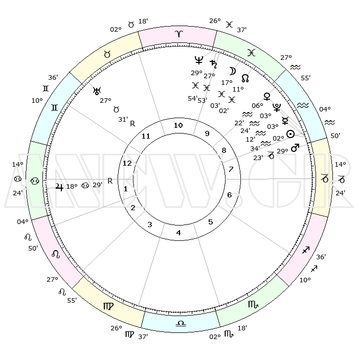 | | ΘΕΣΕΙΣ ΠΛΑΝΗΤΩΝ ΑΣΤΡΟΛΟΓΙΚΟΥ ΧΑΡΤΗ ΤΗΣ ΣΤΙΓΜΗΣ ΑΥΤΗΣ | | | | Πλανήτης | Ζώδιο | Μοίρες | Δεκαήμ. | Σε οίκο | Απόκλιση | | Ακμές των οίκων | | Ηλιος | Υδροχόος | 02°29' | Πρώτο | 9 | 19 S 36 | | 1ος | 18°50' | Δίδυμοι | | Σελήνη | Ιχθείς | 16°01' | Δεύτερο | 10 | 04 S 57 | | 2ος | 10°37' | Καρκίνος | | Ερμής | Υδροχόος | 03°04' | Πρώτο | 9 | 21 S 29 | | 3ος | 01°55' | Λέων | | Αφροδίτη | Υδροχόος | 06°16' | Πρώτο | 9 | 19 S 51 | | 4ος | 26°36' | Λέων | | Αρης | Αιγόκερως | 29°20' | Τρίτο | 8 | 21 S 16 | | 5ος | 28°33' | Παρθένος | | Δίας | Καρκίνος | 18°30'R | Δεύτερο | 2 | 22 N 26 | | 6ος | 08°50' | Σκορπιός | | Κρόνος | Ιχθείς | 27°52' | Τρίτο | 10 | 02 S 52 | | 7ος | 18°50' | Τοξότης | | Ουρανός | Ταύρος | 27°31'R | Τρίτο | 12 | 19 N 25 | | 8ος | 10°37' | Αιγόκερως | | Ποσειδώνας | Ιχθείς | 29°54' | Τρίτο | 11 | 01 S 15 | | 9ος | 01°55' | Υδροχόος | | Πλούτωνας | Υδροχόος | 03°24' | Πρώτο | 9 | 23 S 05 | | 10ος | 26°36' | Υδροχόος | | Β. Δεσμός | Ιχθείς | 11°02' | Δεύτερο | 10 | 07 S 26 | | 11ος | 28°33' | Ιχθείς | | Ωροσκόπος | Δίδυμοι | 18°50' | Δεύτερο | | | 12ος | 08°50' | Ταύρος | | Μεσουράνημα | Υδροχόος | 26°36' | Τρίτο | | | |