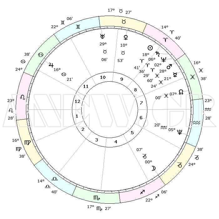 | | ΘΕΣΕΙΣ ΠΛΑΝΗΤΩΝ ΑΣΤΡΟΛΟΓΙΚΟΥ ΧΑΡΤΗ ΤΗΣ ΣΤΙΓΜΗΣ ΑΥΤΗΣ | | | | Πλανήτης | Ζώδιο | Μοίρες | Δεκαήμ. | Σε οίκο | Απόκλιση | | Ακμές των οίκων | | Ηλιος | Κριός | 18°38' | Δεύτερο | 9 | 07 N 18 | | 1ος | 06°34' | Λέων | | Σελήνη | Τοξότης | 29°26' | Τρίτο | 5 | 28 S 15 | | 2ος | 28°06' | Λέων | | Ερμής | Ιχθείς | 21°20' | Τρίτο | 8 | 05 S 28 | | 3ος | 24°03' | Παρθένος | | Αφροδίτη | Ταύρος | 10°49' | Δεύτερο | 10 | 14 N 57 | | 4ος | 25°49' | Ζυγός | | Αρης | Ιχθείς | 28°57' | Τρίτο | 9 | 01 S 21 | | 5ος | 01°36' | Τοξότης | | Δίας | Καρκίνος | 16°21' | Δεύτερο | 12 | 22 N 48 | | 6ος | 06°16' | Αιγόκερως | | Κρόνος | Κριός | 06°35' | Πρώτο | 9 | 00 N 39 | | 7ος | 06°34' | Υδροχόος | | Ουρανός | Ταύρος | 29°06' | Τρίτο | 10 | 19 N 47 | | 8ος | 28°06' | Υδροχόος | | Ποσειδώνας | Κριός | 02°29' | Πρώτο | 9 | 00 S 13 | | 9ος | 24°03' | Ιχθείς | | Πλούτωνας | Υδροχόος | 05°20' | Πρώτο | 6 | 22 S 47 | | 10ος | 25°49' | Κριός | | Β. Δεσμός | Ιχθείς | 07°01' | Πρώτο | 8 | 08 S 56 | | 11ος | 01°36' | Δίδυμοι | | Ωροσκόπος | Λέων | 06°34' | Πρώτο | | | 12ος | 06°16' | Καρκίνος | | Μεσουράνημα | Κριός | 25°49' | Τρίτο | | | |