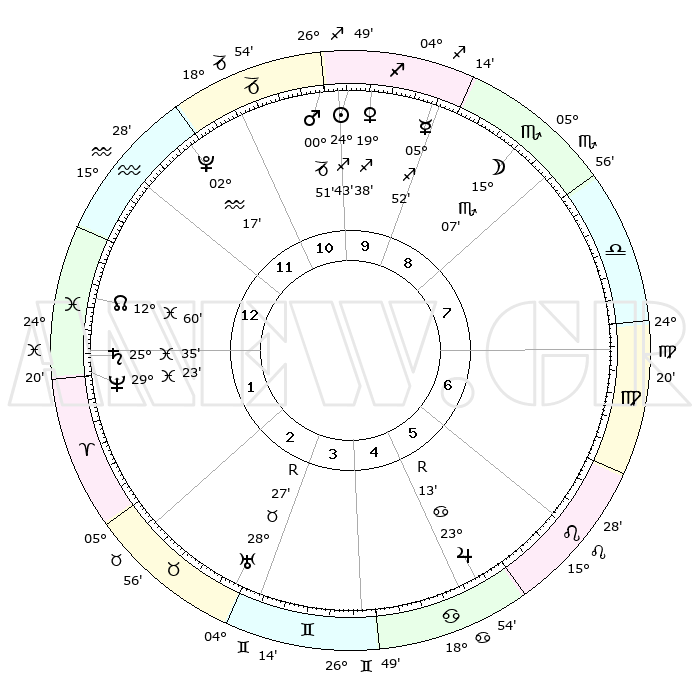 | | ΘΕΣΕΙΣ ΠΛΑΝΗΤΩΝ ΑΣΤΡΟΛΟΓΙΚΟΥ ΧΑΡΤΗ ΤΗΣ ΣΤΙΓΜΗΣ ΑΥΤΗΣ | | | | Πλανήτης | Ζώδιο | Μοίρες | Δεκαήμ. | Σε οίκο | Απόκλιση | | Ακμές των οίκων | | Ηλιος | Τοξότης | 24°20' | Τρίτο | 2 | 23 S 19 | | 1ος | 04°27' | Σκορπιός | | Σελήνη | Σκορπιός | 10°44' | Δεύτερο | 1 | 19 S 04 | | 2ος | 03°08' | Τοξότης | | Ερμής | Τοξότης | 05°22' | Πρώτο | 2 | 19 S 49 | | 3ος | 05°28' | Αιγόκερως | | Αφροδίτη | Τοξότης | 19°10' | Δεύτερο | 2 | 22 S 52 | | 4ος | 09°58' | Υδροχόος | | Αρης | Αιγόκερως | 00°35' | Πρώτο | 2 | 24 S 13 | | 5ος | 12°49' | Ιχθείς | | Δίας | Καρκίνος | 23°15'R | Τρίτο | 9 | 21 N 38 | | 6ος | 11°04' | Κριός | | Κρόνος | Ιχθείς | 25°34' | Τρίτο | 5 | 03 S 53 | | 7ος | 04°27' | Ταύρος | | Ουρανός | Ταύρος | 28°27'R | Τρίτο | 7 | 19 N 37 | | 8ος | 03°08' | Δίδυμοι | | Ποσειδώνας | Ιχθείς | 29°23' | Τρίτο | 5 | 01 S 29 | | 9ος | 05°28' | Καρκίνος | | Πλούτωνας | Υδροχόος | 02°16' | Πρώτο | 3 | 23 S 19 | | 10ος | 09°58' | Λέων | | Β. Δεσμός | Ιχθείς | 13°01' | Δεύτερο | 5 | 06 S 40 | | 11ος | 12°49' | Παρθένος | | Ωροσκόπος | Σκορπιός | 04°27' | Πρώτο | | | 12ος | 11°04' | Ζυγός | | Μεσουράνημα | Λέων | 09°58' | Πρώτο | | | |
