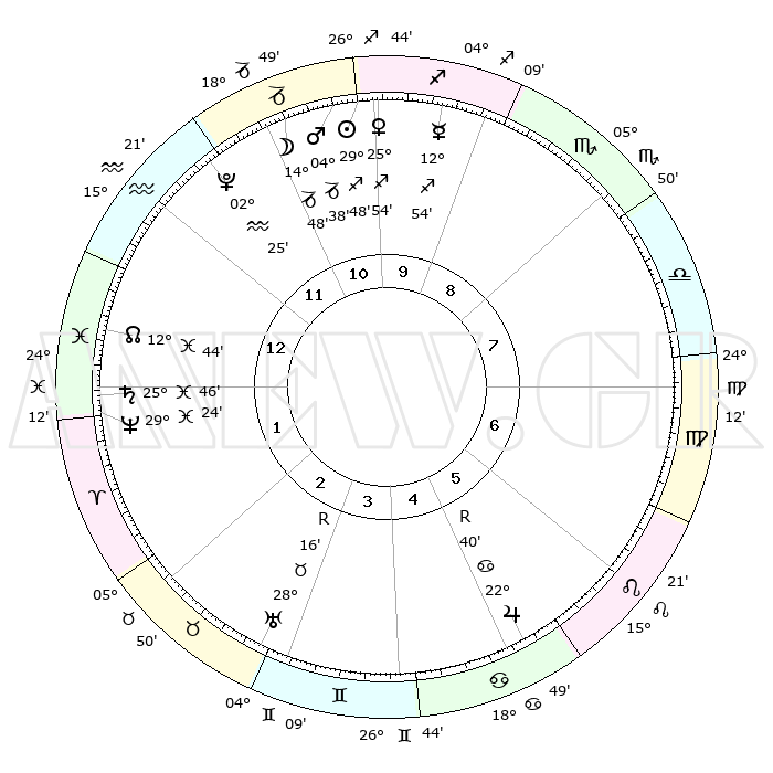 | | ΘΕΣΕΙΣ ΠΛΑΝΗΤΩΝ ΑΣΤΡΟΛΟΓΙΚΟΥ ΧΑΡΤΗ ΤΗΣ ΣΤΙΓΜΗΣ ΑΥΤΗΣ | | | | Πλανήτης | Ζώδιο | Μοίρες | Δεκαήμ. | Σε οίκο | Απόκλιση | | Ακμές των οίκων | | Ηλιος | Τοξότης | 29°43' | Τρίτο | 11 | 23 S 26 | | 1ος | 14°50' | Υδροχόος | | Σελήνη | Αιγόκερως | 13°55' | Δεύτερο | 11 | 26 S 56 | | 2ος | 00°32' | Κριός | | Ερμής | Τοξότης | 12°48' | Δεύτερο | 10 | 21 S 37 | | 3ος | 06°17' | Ταύρος | | Αφροδίτη | Τοξότης | 25°49' | Τρίτο | 11 | 23 S 27 | | 4ος | 02°27' | Δίδυμοι | | Αρης | Αιγόκερως | 04°34' | Πρώτο | 11 | 24 S 10 | | 5ος | 24°25' | Δίδυμοι | | Δίας | Καρκίνος | 22°40'R | Τρίτο | 6 | 21 N 44 | | 6ος | 16°39' | Καρκίνος | | Κρόνος | Ιχθείς | 25°45' | Τρίτο | 1 | 03 S 48 | | 7ος | 14°50' | Λέων | | Ουρανός | Ταύρος | 28°16'R | Τρίτο | 3 | 19 N 34 | | 8ος | 00°32' | Ζυγός | | Ποσειδώνας | Ιχθείς | 29°24' | Τρίτο | 1 | 01 S 28 | | 9ος | 06°17' | Σκορπιός | | Πλούτωνας | Υδροχόος | 02°25' | Πρώτο | 12 | 23 S 17 | | 10ος | 02°27' | Τοξότης | | Β. Δεσμός | Ιχθείς | 12°44' | Δεύτερο | 1 | 06 S 47 | | 11ος | 24°25' | Τοξότης | | Ωροσκόπος | Υδροχόος | 14°50' | Δεύτερο | | | 12ος | 16°39' | Αιγόκερως | | Μεσουράνημα | Τοξότης | 02°27' | Πρώτο | | | |