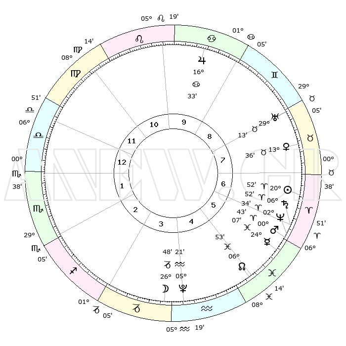 | | ΘΕΣΕΙΣ ΠΛΑΝΗΤΩΝ ΑΣΤΡΟΛΟΓΙΚΟΥ ΧΑΡΤΗ ΤΗΣ ΣΤΙΓΜΗΣ ΑΥΤΗΣ | | | | Πλανήτης | Ζώδιο | Μοίρες | Δεκαήμ. | Σε οίκο | Απόκλιση | | Ακμές των οίκων | | Ηλιος | Κριός | 20°47' | Τρίτο | 7 | 08 N 07 | | 1ος | 06°37' | Ζυγός | | Σελήνη | Αιγόκερως | 25°49' | Τρίτο | 4 | 24 S 24 | | 2ος | 03°39' | Σκορπιός | | Ερμής | Ιχθείς | 24°01' | Τρίτο | 6 | 04 S 34 | | 3ος | 04°21' | Τοξότης | | Αφροδίτη | Ταύρος | 13°30' | Δεύτερο | 8 | 15 N 52 | | 4ος | 07°26' | Αιγόκερως | | Αρης | Κριός | 00°40' | Πρώτο | 6 | 00 S 40 | | 5ος | 10°22' | Υδροχόος | | Δίας | Καρκίνος | 16°33' | Δεύτερο | 10 | 22 N 47 | | 6ος | 10°32' | Ιχθείς | | Κρόνος | Κριός | 06°51' | Πρώτο | 7 | 00 N 45 | | 7ος | 06°37' | Κριός | | Ουρανός | Ταύρος | 29°13' | Τρίτο | 8 | 19 N 49 | | 8ος | 03°39' | Ταύρος | | Ποσειδώνας | Κριός | 02°34' | Πρώτο | 6 | 00 S 11 | | 9ος | 04°21' | Δίδυμοι | | Πλούτωνας | Υδροχόος | 05°21' | Πρώτο | 4 | 22 S 47 | | 10ος | 07°26' | Καρκίνος | | Β. Δεσμός | Ιχθείς | 06°54' | Πρώτο | 5 | 08 S 59 | | 11ος | 10°22' | Λέων | | Ωροσκόπος | Ζυγός | 06°37' | Πρώτο | | | 12ος | 10°32' | Παρθένος | | Μεσουράνημα | Καρκίνος | 07°26' | Πρώτο | | | |