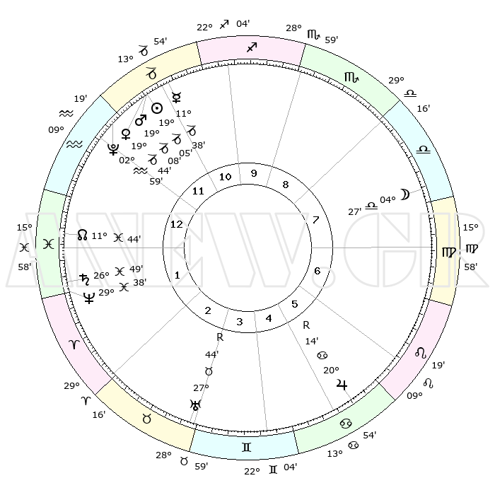 | | ΘΕΣΕΙΣ ΠΛΑΝΗΤΩΝ ΑΣΤΡΟΛΟΓΙΚΟΥ ΧΑΡΤΗ ΤΗΣ ΣΤΙΓΜΗΣ ΑΥΤΗΣ | | | | Πλανήτης | Ζώδιο | Μοίρες | Δεκαήμ. | Σε οίκο | Απόκλιση | | Ακμές των οίκων | | Ηλιος | Αιγόκερως | 18°13' | Δεύτερο | 9 | 22 S 12 | | 1ος | 00°07' | Δίδυμοι | | Σελήνη | Παρθένος | 23°37' | Τρίτο | 5 | 01 N 27 | | 2ος | 24°54' | Δίδυμοι | | Ερμής | Αιγόκερως | 10°16' | Δεύτερο | 8 | 24 S 21 | | 3ος | 16°19' | Καρκίνος | | Αφροδίτη | Αιγόκερως | 18°39' | Δεύτερο | 9 | 22 S 54 | | 4ος | 09°05' | Λέων | | Αρης | Αιγόκερως | 18°28' | Δεύτερο | 9 | 23 S 05 | | 5ος | 07°34' | Παρθένος | | Δίας | Καρκίνος | 20°21'R | Τρίτο | 3 | 22 N 09 | | 6ος | 16°02' | Ζυγός | | Κρόνος | Ιχθείς | 26°46' | Τρίτο | 11 | 03 S 20 | | 7ος | 00°07' | Τοξότης | | Ουρανός | Ταύρος | 27°45'R | Τρίτο | 12 | 19 N 28 | | 8ος | 24°54' | Τοξότης | | Ποσειδώνας | Ιχθείς | 29°37' | Τρίτο | 11 | 01 S 22 | | 9ος | 16°19' | Αιγόκερως | | Πλούτωνας | Υδροχόος | 02°57' | Πρώτο | 9 | 23 S 10 | | 10ος | 09°05' | Υδροχόος | | Β. Δεσμός | Ιχθείς | 11°46' | Δεύτερο | 11 | 07 S 09 | | 11ος | 07°34' | Ιχθείς | | Ωροσκόπος | Δίδυμοι | 00°07' | Πρώτο | | | 12ος | 16°02' | Κριός | | Μεσουράνημα | Υδροχόος | 09°05' | Πρώτο | | | |