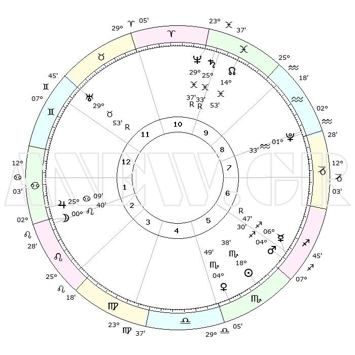 | | ΘΕΣΕΙΣ ΠΛΑΝΗΤΩΝ ΑΣΤΡΟΛΟΓΙΚΟΥ ΧΑΡΤΗ ΤΗΣ ΣΤΙΓΜΗΣ ΑΥΤΗΣ | | | | Πλανήτης | Ζώδιο | Μοίρες | Δεκαήμ. | Σε οίκο | Απόκλιση | | Ακμές των οίκων | | Ηλιος | Σκορπιός | 18°33' | Δεύτερο | 6 | 17 S 21 | | 1ος | 18°04' | Δίδυμοι | | Σελήνη | Καρκίνος | 29°40' | Τρίτο | 2 | 23 N 50 | | 2ος | 09°57' | Καρκίνος | | Ερμής | Τοξότης | 06°48'R | Πρώτο | 6 | 23 S 37 | | 3ος | 01°13' | Λέων | | Αφροδίτη | Σκορπιός | 04°44' | Πρώτο | 5 | 11 S 52 | | 4ος | 25°49' | Λέων | | Αρης | Τοξότης | 04°27' | Πρώτο | 6 | 21 S 30 | | 5ος | 27°38' | Παρθένος | | Δίας | Καρκίνος | 25°09' | Τρίτο | 2 | 21 N 12 | | 6ος | 07°53' | Σκορπιός | | Κρόνος | Ιχθείς | 25°33'R | Τρίτο | 10 | 04 S 00 | | 7ος | 18°04' | Τοξότης | | Ουρανός | Ταύρος | 29°53'R | Τρίτο | 12 | 19 N 55 | | 8ος | 09°57' | Αιγόκερως | | Ποσειδώνας | Ιχθείς | 29°37'R | Τρίτο | 11 | 01 S 24 | | 9ος | 01°13' | Υδροχόος | | Πλούτωνας | Υδροχόος | 01°33' | Πρώτο | 9 | 23 S 29 | | 10ος | 25°49' | Υδροχόος | | Β. Δεσμός | Ιχθείς | 14°53' | Δεύτερο | 10 | 05 S 57 | | 11ος | 27°38' | Ιχθείς | | Ωροσκόπος | Δίδυμοι | 18°04' | Δεύτερο | | | 12ος | 07°53' | Ταύρος | | Μεσουράνημα | Υδροχόος | 25°49' | Τρίτο | | | |