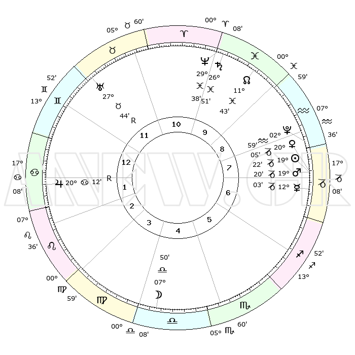 | | ΘΕΣΕΙΣ ΠΛΑΝΗΤΩΝ ΑΣΤΡΟΛΟΓΙΚΟΥ ΧΑΡΤΗ ΤΗΣ ΣΤΙΓΜΗΣ ΑΥΤΗΣ | | | | Πλανήτης | Ζώδιο | Μοίρες | Δεκαήμ. | Σε οίκο | Απόκλιση | | Ακμές των οίκων | | Ηλιος | Αιγόκερως | 18°38' | Δεύτερο | 4 | 22 S 08 | | 1ος | 07°54' | Ζυγός | | Σελήνη | Παρθένος | 28°49' | Τρίτο | 12 | 01 S 02 | | 2ος | 05°01' | Σκορπιός | | Ερμής | Αιγόκερως | 10°55' | Δεύτερο | 4 | 24 S 20 | | 3ος | 05°46' | Τοξότης | | Αφροδίτη | Αιγόκερως | 19°10' | Δεύτερο | 4 | 22 S 50 | | 4ος | 08°53' | Αιγόκερως | | Αρης | Αιγόκερως | 18°47' | Δεύτερο | 4 | 23 S 03 | | 5ος | 11°49' | Υδροχόος | | Δίας | Καρκίνος | 20°18'R | Τρίτο | 10 | 22 N 09 | | 6ος | 11°55' | Ιχθείς | | Κρόνος | Ιχθείς | 26°48' | Τρίτο | 6 | 03 S 20 | | 7ος | 07°54' | Κριός | | Ουρανός | Ταύρος | 27°45'R | Τρίτο | 8 | 19 N 28 | | 8ος | 05°01' | Ταύρος | | Ποσειδώνας | Ιχθείς | 29°37' | Τρίτο | 6 | 01 S 22 | | 9ος | 05°46' | Δίδυμοι | | Πλούτωνας | Υδροχόος | 02°58' | Πρώτο | 4 | 23 S 10 | | 10ος | 08°53' | Καρκίνος | | Β. Δεσμός | Ιχθείς | 11°45' | Δεύτερο | 5 | 07 S 09 | | 11ος | 11°49' | Λέων | | Ωροσκόπος | Ζυγός | 07°54' | Πρώτο | | | 12ος | 11°55' | Παρθένος | | Μεσουράνημα | Καρκίνος | 08°53' | Πρώτο | | | |