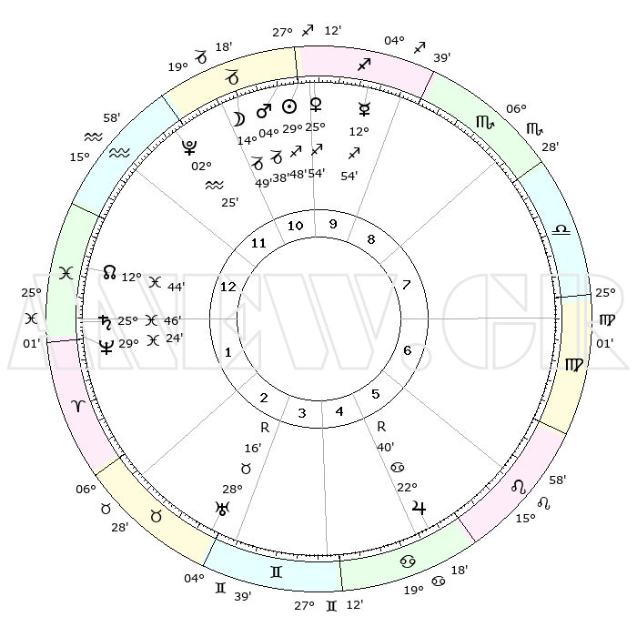 | | ΘΕΣΕΙΣ ΠΛΑΝΗΤΩΝ ΑΣΤΡΟΛΟΓΙΚΟΥ ΧΑΡΤΗ ΤΗΣ ΣΤΙΓΜΗΣ ΑΥΤΗΣ | | | | Πλανήτης | Ζώδιο | Μοίρες | Δεκαήμ. | Σε οίκο | Απόκλιση | | Ακμές των οίκων | | Ηλιος | Τοξότης | 29°26' | Τρίτο | 2 | 23 S 26 | | 1ος | 11°13' | Σκορπιός | | Σελήνη | Αιγόκερως | 10°34' | Δεύτερο | 2 | 27 S 24 | | 2ος | 10°23' | Τοξότης | | Ερμής | Τοξότης | 12°24' | Δεύτερο | 2 | 21 S 31 | | 3ος | 13°25' | Αιγόκερως | | Αφροδίτη | Τοξότης | 25°28' | Τρίτο | 2 | 23 S 26 | | 4ος | 18°25' | Υδροχόος | | Αρης | Αιγόκερως | 04°22' | Πρώτο | 2 | 24 S 11 | | 5ος | 21°02' | Ιχθείς | | Δίας | Καρκίνος | 22°42'R | Τρίτο | 9 | 21 N 44 | | 6ος | 18°32' | Κριός | | Κρόνος | Ιχθείς | 25°45' | Τρίτο | 5 | 03 S 48 | | 7ος | 11°13' | Ταύρος | | Ουρανός | Ταύρος | 28°17'R | Τρίτο | 7 | 19 N 35 | | 8ος | 10°23' | Δίδυμοι | | Ποσειδώνας | Ιχθείς | 29°24' | Τρίτο | 5 | 01 S 28 | | 9ος | 13°25' | Καρκίνος | | Πλούτωνας | Υδροχόος | 02°24' | Πρώτο | 3 | 23 S 17 | | 10ος | 18°25' | Λέων | | Β. Δεσμός | Ιχθείς | 12°45' | Δεύτερο | 4 | 06 S 46 | | 11ος | 21°02' | Παρθένος | | Ωροσκόπος | Σκορπιός | 11°13' | Δεύτερο | | | 12ος | 18°32' | Ζυγός | | Μεσουράνημα | Λέων | 18°25' | Δεύτερο | | | |