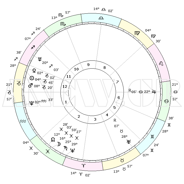 | | ΘΕΣΕΙΣ ΠΛΑΝΗΤΩΝ ΑΣΤΡΟΛΟΓΙΚΟΥ ΧΑΡΤΗ ΤΗΣ ΣΤΙΓΜΗΣ ΑΥΤΗΣ | | | | Πλανήτης | Ζώδιο | Μοίρες | Δεκαήμ. | Σε οίκο | Απόκλιση | | Ακμές των οίκων | | Ηλιος | Αιγόκερως | 04°40' | Πρώτο | 1 | 23 S 21 | | 1ος | 22°06' | Τοξότης | | Σελήνη | Ιχθείς | 14°55' | Δεύτερο | 3 | 05 S 38 | | 2ος | 27°20' | Αιγόκερως | | Ερμής | Τοξότης | 19°55' | Δεύτερο | 12 | 22 S 57 | | 3ος | 06°33' | Ιχθείς | | Αφροδίτη | Αιγόκερως | 01°55' | Πρώτο | 1 | 23 S 42 | | 4ος | 11°35' | Κριός | | Αρης | Αιγόκερως | 08°16' | Πρώτο | 1 | 24 S 02 | | 5ος | 09°12' | Ταύρος | | Δίας | Καρκίνος | 22°05'R | Τρίτο | 7 | 21 N 51 | | 6ος | 01°38' | Δίδυμοι | | Κρόνος | Ιχθείς | 25°59' | Τρίτο | 3 | 03 S 42 | | 7ος | 22°06' | Δίδυμοι | | Ουρανός | Ταύρος | 28°07'R | Τρίτο | 5 | 19 N 32 | | 8ος | 27°20' | Καρκίνος | | Ποσειδώνας | Ιχθείς | 29°27' | Τρίτο | 3 | 01 S 27 | | 9ος | 06°33' | Παρθένος | | Πλούτωνας | Υδροχόος | 02°33' | Πρώτο | 2 | 23 S 15 | | 10ος | 11°35' | Ζυγός | | Β. Δεσμός | Ιχθείς | 12°29' | Δεύτερο | 3 | 06 S 53 | | 11ος | 09°12' | Σκορπιός | | Ωροσκόπος | Τοξότης | 22°06' | Τρίτο | | | 12ος | 01°38' | Τοξότης | | Μεσουράνημα | Ζυγός | 11°35' | Δεύτερο | | | |