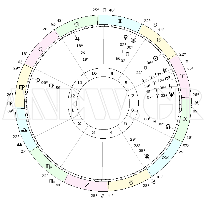 | | ΘΕΣΕΙΣ ΠΛΑΝΗΤΩΝ ΑΣΤΡΟΛΟΓΙΚΟΥ ΧΑΡΤΗ ΤΗΣ ΣΤΙΓΜΗΣ ΑΥΤΗΣ | | | | Πλανήτης | Ζώδιο | Μοίρες | Δεκαήμ. | Σε οίκο | Απόκλιση | | Ακμές των οίκων | | Ηλιος | Ταύρος | 05°38' | Πρώτο | 5 | 13 N 24 | | 1ος | 11°09' | Τοξότης | | Σελήνη | Λέων | 27°13' | Τρίτο | 9 | 13 N 17 | | 2ος | 14°05' | Αιγόκερως | | Ερμής | Κριός | 16°44' | Δεύτερο | 4 | 04 N 22 | | 3ος | 21°40' | Υδροχόος | | Αφροδίτη | Δίδυμοι | 02°02' | Πρώτο | 6 | 21 N 13 | | 4ος | 27°37' | Ιχθείς | | Αρης | Κριός | 12°25' | Δεύτερο | 4 | 04 N 03 | | 5ος | 27°03' | Κριός | | Δίας | Καρκίνος | 18°13' | Δεύτερο | 8 | 22 N 35 | | 6ος | 20°39' | Ταύρος | | Κρόνος | Κριός | 08°40' | Πρώτο | 4 | 01 N 27 | | 7ος | 11°09' | Δίδυμοι | | Ουρανός | Ταύρος | 29°60' | Τρίτο | 6 | 19 N 59 | | 8ος | 14°05' | Καρκίνος | | Ποσειδώνας | Κριός | 03°06' | Πρώτο | 4 | 00 N 01 | | 9ος | 21°40' | Λέων | | Πλούτωνας | Υδροχόος | 05°29' | Πρώτο | 2 | 22 S 48 | | 10ος | 27°37' | Παρθένος | | Β. Δεσμός | Ιχθείς | 06°05' | Πρώτο | 3 | 09 S 17 | | 11ος | 27°03' | Ζυγός | | Ωροσκόπος | Τοξότης | 11°09' | Δεύτερο | | | 12ος | 20°39' | Σκορπιός | | Μεσουράνημα | Παρθένος | 27°37' | Τρίτο | | | |
