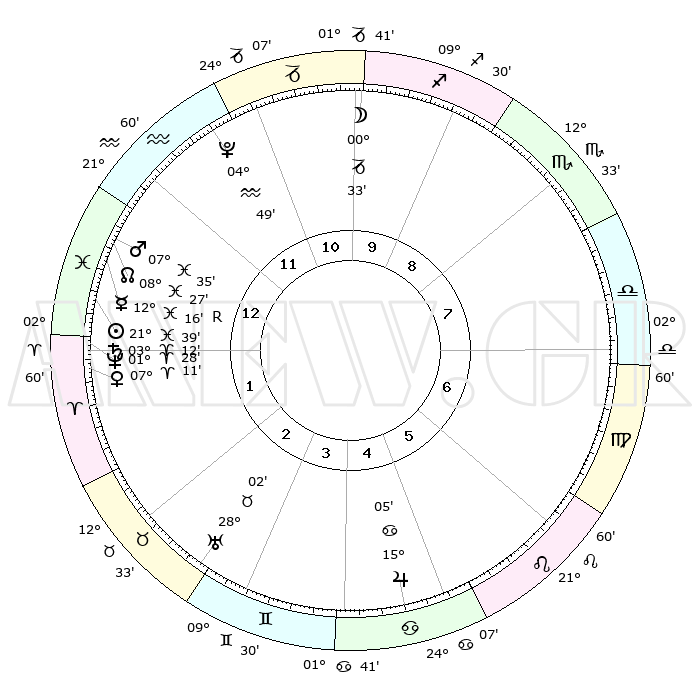 | | ΘΕΣΕΙΣ ΠΛΑΝΗΤΩΝ ΑΣΤΡΟΛΟΓΙΚΟΥ ΧΑΡΤΗ ΤΗΣ ΣΤΙΓΜΗΣ ΑΥΤΗΣ | | | | Πλανήτης | Ζώδιο | Μοίρες | Δεκαήμ. | Σε οίκο | Απόκλιση | | Ακμές των οίκων | | Ηλιος | Ιχθείς | 21°35' | Τρίτο | 1 | 03 S 20 | | 1ος | 25°52' | Υδροχόος | | Σελήνη | Τοξότης | 29°46' | Τρίτο | 10 | 28 S 22 | | 2ος | 11°33' | Κριός | | Ερμής | Ιχθείς | 12°20'R | Δεύτερο | 1 | 04 S 08 | | 3ος | 15°05' | Ταύρος | | Αφροδίτη | Κριός | 07°06' | Πρώτο | 1 | 01 N 47 | | 4ος | 09°55' | Δίδυμοι | | Αρης | Ιχθείς | 07°32' | Πρώτο | 1 | 09 S 45 | | 5ος | 01°38' | Καρκίνος | | Δίας | Καρκίνος | 15°05' | Δεύτερο | 5 | 22 N 56 | | 6ος | 24°47' | Καρκίνος | | Κρόνος | Κριός | 03°12' | Πρώτο | 1 | 00 S 41 | | 7ος | 25°52' | Λέων | | Ουρανός | Ταύρος | 28°01' | Τρίτο | 3 | 19 N 33 | | 8ος | 11°33' | Ζυγός | | Ποσειδώνας | Κριός | 01°28' | Πρώτο | 1 | 00 S 37 | | 9ος | 15°05' | Σκορπιός | | Πλούτωνας | Υδροχόος | 04°49' | Πρώτο | 12 | 22 S 50 | | 10ος | 09°55' | Τοξότης | | Β. Δεσμός | Ιχθείς | 08°27' | Πρώτο | 1 | 08 S 24 | | 11ος | 01°38' | Αιγόκερως | | Ωροσκόπος | Υδροχόος | 25°52' | Τρίτο | | | 12ος | 24°47' | Αιγόκερως | | Μεσουράνημα | Τοξότης | 09°55' | Πρώτο | | | |