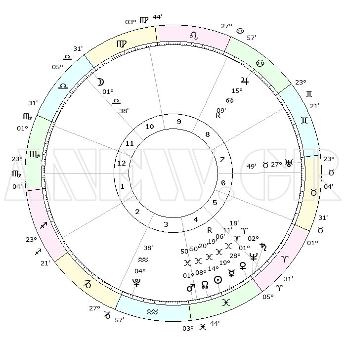 | | ΘΕΣΕΙΣ ΠΛΑΝΗΤΩΝ ΑΣΤΡΟΛΟΓΙΚΟΥ ΧΑΡΤΗ ΤΗΣ ΣΤΙΓΜΗΣ ΑΥΤΗΣ | | | | Πλανήτης | Ζώδιο | Μοίρες | Δεκαήμ. | Σε οίκο | Απόκλιση | | Ακμές των οίκων | | Ηλιος | Ιχθείς | 14°17' | Δεύτερο | 4 | 06 S 11 | | 1ος | 09°12' | Σκορπιός | | Σελήνη | Ζυγός | 01°01' | Πρώτο | 11 | 02 S 13 | | 2ος | 08°13' | Τοξότης | | Ερμής | Ιχθείς | 19°21'R | Δεύτερο | 5 | 00 S 50 | | 3ος | 11°01' | Αιγόκερως | | Αφροδίτη | Ιχθείς | 28°02' | Τρίτο | 5 | 01 S 58 | | 4ος | 15°53' | Υδροχόος | | Αρης | Ιχθείς | 01°48' | Πρώτο | 4 | 11 S 51 | | 5ος | 18°35' | Ιχθείς | | Δίας | Καρκίνος | 15°09'R | Δεύτερο | 9 | 22 N 55 | | 6ος | 16°19' | Κριός | | Κρόνος | Κριός | 02°18' | Πρώτο | 5 | 01 S 02 | | 7ος | 09°12' | Ταύρος | | Ουρανός | Ταύρος | 27°49' | Τρίτο | 7 | 19 N 30 | | 8ος | 08°13' | Δίδυμοι | | Ποσειδώνας | Κριός | 01°11' | Πρώτο | 5 | 00 S 44 | | 9ος | 11°01' | Καρκίνος | | Πλούτωνας | Υδροχόος | 04°38' | Πρώτο | 3 | 22 S 52 | | 10ος | 15°53' | Λέων | | Β. Δεσμός | Ιχθείς | 08°50' | Πρώτο | 4 | 08 S 15 | | 11ος | 18°35' | Παρθένος | | Ωροσκόπος | Σκορπιός | 09°12' | Πρώτο | | | 12ος | 16°19' | Ζυγός | | Μεσουράνημα | Λέων | 15°53' | Δεύτερο | | | |