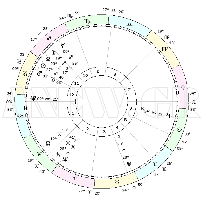 | | ΘΕΣΕΙΣ ΠΛΑΝΗΤΩΝ ΑΣΤΡΟΛΟΓΙΚΟΥ ΧΑΡΤΗ ΤΗΣ ΣΤΙΓΜΗΣ ΑΥΤΗΣ | | | | Πλανήτης | Ζώδιο | Μοίρες | Δεκαήμ. | Σε οίκο | Απόκλιση | | Ακμές των οίκων | | Ηλιος | Τοξότης | 27°21' | Τρίτο | 3 | 23 S 24 | | 1ος | 24°42' | Ζυγός | | Σελήνη | Τοξότης | 15°50' | Δεύτερο | 2 | 27 S 39 | | 2ος | 22°48' | Σκορπιός | | Ερμής | Τοξότης | 09°28' | Πρώτο | 2 | 20 S 51 | | 3ος | 24°23' | Τοξότης | | Αφροδίτη | Τοξότης | 22°53' | Τρίτο | 2 | 23 S 14 | | 4ος | 28°14' | Αιγόκερως | | Αρης | Αιγόκερως | 02°49' | Πρώτο | 3 | 24 S 12 | | 5ος | 01°11' | Ιχθείς | | Δίας | Καρκίνος | 22°56'R | Τρίτο | 9 | 21 N 41 | | 6ος | 00°18' | Κριός | | Κρόνος | Ιχθείς | 25°40' | Τρίτο | 5 | 03 S 50 | | 7ος | 24°42' | Κριός | | Ουρανός | Ταύρος | 28°21'R | Τρίτο | 8 | 19 N 35 | | 8ος | 22°48' | Ταύρος | | Ποσειδώνας | Ιχθείς | 29°24' | Τρίτο | 5 | 01 S 28 | | 9ος | 24°23' | Δίδυμοι | | Πλούτωνας | Υδροχόος | 02°21' | Πρώτο | 4 | 23 S 18 | | 10ος | 28°14' | Καρκίνος | | Β. Δεσμός | Ιχθείς | 12°51' | Δεύτερο | 5 | 06 S 44 | | 11ος | 01°11' | Παρθένος | | Ωροσκόπος | Ζυγός | 24°42' | Τρίτο | | | 12ος | 00°18' | Ζυγός | | Μεσουράνημα | Καρκίνος | 28°14' | Τρίτο | | | |