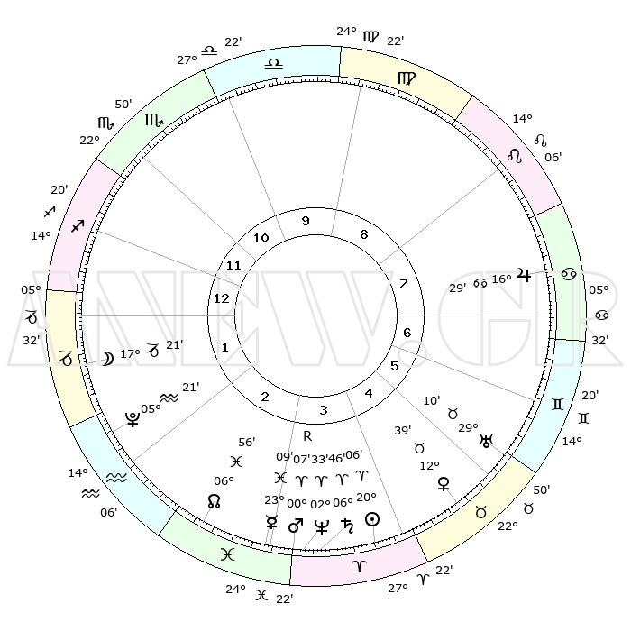 | | ΘΕΣΕΙΣ ΠΛΑΝΗΤΩΝ ΑΣΤΡΟΛΟΓΙΚΟΥ ΧΑΡΤΗ ΤΗΣ ΣΤΙΓΜΗΣ ΑΥΤΗΣ | | | | Πλανήτης | Ζώδιο | Μοίρες | Δεκαήμ. | Σε οίκο | Απόκλιση | | Ακμές των οίκων | | Ηλιος | Κριός | 20°02' | Τρίτο | 4 | 07 N 50 | | 1ος | 12°51' | Τοξότης | | Σελήνη | Αιγόκερως | 16°29' | Δεύτερο | 2 | 26 S 26 | | 2ος | 16°06' | Αιγόκερως | | Ερμής | Ιχθείς | 23°03' | Τρίτο | 3 | 04 S 54 | | 3ος | 23°58' | Υδροχόος | | Αφροδίτη | Ταύρος | 12°34' | Δεύτερο | 5 | 15 N 33 | | 4ος | 29°49' | Ιχθείς | | Αρης | Κριός | 00°04'R | Πρώτο | 4 | 00 S 54 | | 5ος | 28°59' | Κριός | | Δίας | Καρκίνος | 16°28' | Δεύτερο | 8 | 22 N 47 | | 6ος | 22°23' | Ταύρος | | Κρόνος | Κριός | 06°46' | Πρώτο | 4 | 00 N 43 | | 7ος | 12°51' | Δίδυμοι | | Ουρανός | Ταύρος | 29°10' | Τρίτο | 6 | 19 N 48 | | 8ος | 16°06' | Καρκίνος | | Ποσειδώνας | Κριός | 02°32' | Πρώτο | 4 | 00 S 12 | | 9ος | 23°58' | Λέων | | Πλούτωνας | Υδροχόος | 05°21' | Πρώτο | 2 | 22 S 47 | | 10ος | 29°49' | Παρθένος | | Β. Δεσμός | Ιχθείς | 06°56' | Πρώτο | 3 | 08 S 58 | | 11ος | 28°59' | Ζυγός | | Ωροσκόπος | Τοξότης | 12°51' | Δεύτερο | | | 12ος | 22°23' | Σκορπιός | | Μεσουράνημα | Παρθένος | 29°49' | Τρίτο | | | |