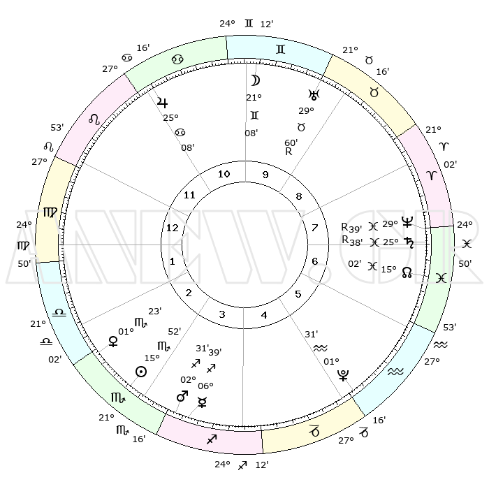 | | ΘΕΣΕΙΣ ΠΛΑΝΗΤΩΝ ΑΣΤΡΟΛΟΓΙΚΟΥ ΧΑΡΤΗ ΤΗΣ ΣΤΙΓΜΗΣ ΑΥΤΗΣ | | | | Πλανήτης | Ζώδιο | Μοίρες | Δεκαήμ. | Σε οίκο | Απόκλιση | | Ακμές των οίκων | | Ηλιος | Σκορπιός | 15°40' | Δεύτερο | 4 | 16 S 32 | | 1ος | 26°30' | Καρκίνος | | Σελήνη | Δίδυμοι | 18°07' | Δεύτερο | 11 | 27 N 57 | | 2ος | 17°20' | Λέων | | Ερμής | Τοξότης | 06°36' | Πρώτο | 5 | 23 S 58 | | 3ος | 11°55' | Παρθένος | | Αφροδίτη | Σκορπιός | 01°08' | Πρώτο | 4 | 10 S 35 | | 4ος | 12°29' | Ζυγός | | Αρης | Τοξότης | 02°22' | Πρώτο | 5 | 21 S 05 | | 5ος | 18°35' | Σκορπιός | | Δίας | Καρκίνος | 25°08' | Τρίτο | 12 | 21 N 12 | | 6ος | 24°52' | Τοξότης | | Κρόνος | Ιχθείς | 25°39'R | Τρίτο | 9 | 03 S 59 | | 7ος | 26°30' | Αιγόκερως | | Ουρανός | Δίδυμοι | 00°00'R | Πρώτο | 11 | 19 N 57 | | 8ος | 17°20' | Υδροχόος | | Ποσειδώνας | Ιχθείς | 29°40'R | Τρίτο | 9 | 01 S 23 | | 9ος | 11°55' | Ιχθείς | | Πλούτωνας | Υδροχόος | 01°31' | Πρώτο | 7 | 23 S 30 | | 10ος | 12°29' | Κριός | | Β. Δεσμός | Ιχθείς | 15°02' | Δεύτερο | 9 | 05 S 54 | | 11ος | 18°35' | Ταύρος | | Ωροσκόπος | Καρκίνος | 26°30' | Τρίτο | | | 12ος | 24°52' | Δίδυμοι | | Μεσουράνημα | Κριός | 12°29' | Δεύτερο | | | |