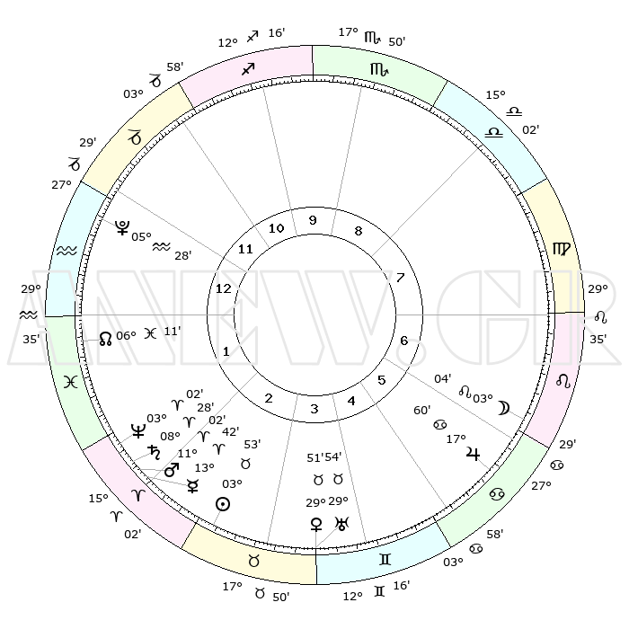 | | ΘΕΣΕΙΣ ΠΛΑΝΗΤΩΝ ΑΣΤΡΟΛΟΓΙΚΟΥ ΧΑΡΤΗ ΤΗΣ ΣΤΙΓΜΗΣ ΑΥΤΗΣ | | | | Πλανήτης | Ζώδιο | Μοίρες | Δεκαήμ. | Σε οίκο | Απόκλιση | | Ακμές των οίκων | | Ηλιος | Ταύρος | 03°49' | Πρώτο | 3 | 12 N 47 | | 1ος | 25°49' | Αιγόκερως | | Σελήνη | Λέων | 02°05' | Πρώτο | 7 | 22 N 34 | | 2ος | 09°11' | Ιχθείς | | Ερμής | Κριός | 13°35' | Δεύτερο | 2 | 03 N 04 | | 3ος | 18°14' | Κριός | | Αφροδίτη | Ταύρος | 29°46' | Τρίτο | 4 | 20 N 40 | | 4ος | 17°26' | Ταύρος | | Αρης | Κριός | 10°59' | Δεύτερο | 2 | 03 N 29 | | 5ος | 10°32' | Δίδυμοι | | Δίας | Καρκίνος | 17°59' | Δεύτερο | 6 | 22 N 36 | | 6ος | 01°49' | Καρκίνος | | Κρόνος | Κριός | 08°27' | Πρώτο | 2 | 01 N 22 | | 7ος | 25°49' | Καρκίνος | | Ουρανός | Ταύρος | 29°54' | Τρίτο | 4 | 19 N 58 | | 8ος | 09°11' | Παρθένος | | Ποσειδώνας | Κριός | 03°02' | Πρώτο | 2 | 00 S 00 | | 9ος | 18°14' | Ζυγός | | Πλούτωνας | Υδροχόος | 05°28' | Πρώτο | 1 | 22 S 48 | | 10ος | 17°26' | Σκορπιός | | Β. Δεσμός | Ιχθείς | 06°11' | Πρώτο | 1 | 09 S 14 | | 11ος | 10°32' | Τοξότης | | Ωροσκόπος | Αιγόκερως | 25°49' | Τρίτο | | | 12ος | 01°49' | Αιγόκερως | | Μεσουράνημα | Σκορπιός | 17°26' | Δεύτερο | | | |