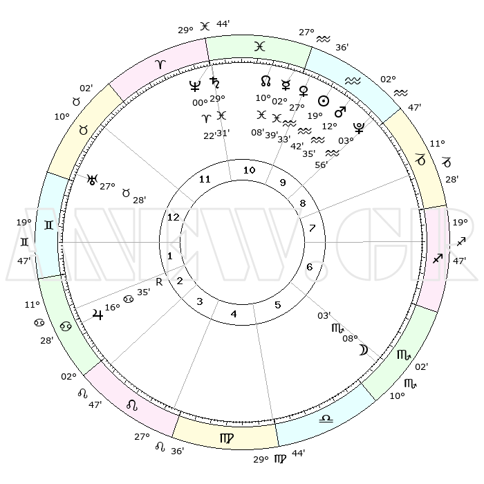 | | ΘΕΣΕΙΣ ΠΛΑΝΗΤΩΝ ΑΣΤΡΟΛΟΓΙΚΟΥ ΧΑΡΤΗ ΤΗΣ ΣΤΙΓΜΗΣ ΑΥΤΗΣ | | | | Πλανήτης | Ζώδιο | Μοίρες | Δεκαήμ. | Σε οίκο | Απόκλιση | | Ακμές των οίκων | | Ηλιος | Υδροχόος | 19°38' | Δεύτερο | 10 | 14 S 56 | | 1ος | 23°04' | Ταύρος | | Σελήνη | Σκορπιός | 07°15' | Πρώτο | 6 | 18 S 08 | | 2ος | 19°22' | Δίδυμοι | | Ερμής | Ιχθείς | 02°33' | Πρώτο | 11 | 11 S 38 | | 3ος | 11°06' | Καρκίνος | | Αφροδίτη | Υδροχόος | 27°28' | Τρίτο | 10 | 13 S 42 | | 4ος | 03°25' | Λέων | | Αρης | Υδροχόος | 12°32' | Δεύτερο | 10 | 18 S 04 | | 5ος | 00°44' | Παρθένος | | Δίας | Καρκίνος | 16°35'R | Δεύτερο | 3 | 22 N 43 | | 6ος | 08°00' | Ζυγός | | Κρόνος | Ιχθείς | 29°31' | Τρίτο | 11 | 02 S 11 | | 7ος | 23°04' | Σκορπιός | | Ουρανός | Ταύρος | 27°28' | Τρίτο | 1 | 19 N 24 | | 8ος | 19°22' | Τοξότης | | Ποσειδώνας | Κριός | 00°22' | Πρώτο | 11 | 01 S 04 | | 9ος | 11°06' | Αιγόκερως | | Πλούτωνας | Υδροχόος | 03°56' | Πρώτο | 10 | 22 S 59 | | 10ος | 03°25' | Υδροχόος | | Β. Δεσμός | Ιχθείς | 10°08' | Δεύτερο | 11 | 07 S 46 | | 11ος | 00°44' | Ιχθείς | | Ωροσκόπος | Ταύρος | 23°04' | Τρίτο | | | 12ος | 08°00' | Κριός | | Μεσουράνημα | Υδροχόος | 03°25' | Πρώτο | | | |