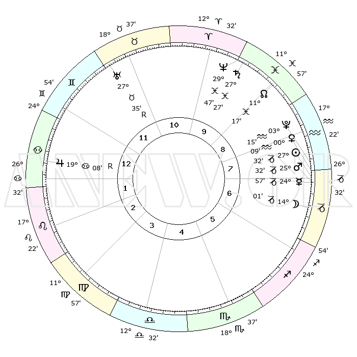 | | ΘΕΣΕΙΣ ΠΛΑΝΗΤΩΝ ΑΣΤΡΟΛΟΓΙΚΟΥ ΧΑΡΤΗ ΤΗΣ ΣΤΙΓΜΗΣ ΑΥΤΗΣ | | | | Πλανήτης | Ζώδιο | Μοίρες | Δεκαήμ. | Σε οίκο | Απόκλιση | | Ακμές των οίκων | | Ηλιος | Αιγόκερως | 27°27' | Τρίτο | 8 | 20 S 40 | | 1ος | 00°37' | Καρκίνος | | Σελήνη | Αιγόκερως | 12°59' | Δεύτερο | 7 | 27 S 04 | | 2ος | 21°23' | Καρκίνος | | Ερμής | Αιγόκερως | 24°49' | Τρίτο | 8 | 23 S 03 | | 3ος | 13°13' | Λέων | | Αφροδίτη | Υδροχόος | 00°03' | Πρώτο | 8 | 21 S 10 | | 4ος | 09°38' | Παρθένος | | Αρης | Αιγόκερως | 25°28' | Τρίτο | 8 | 22 S 00 | | 5ος | 13°40' | Ζυγός | | Δίας | Καρκίνος | 19°08'R | Δεύτερο | 1 | 22 N 20 | | 6ος | 23°38' | Σκορπιός | | Κρόνος | Ιχθείς | 27°27' | Τρίτο | 10 | 03 S 03 | | 7ος | 00°37' | Αιγόκερως | | Ουρανός | Ταύρος | 27°35'R | Τρίτο | 12 | 19 N 26 | | 8ος | 21°23' | Αιγόκερως | | Ποσειδώνας | Ιχθείς | 29°47' | Τρίτο | 10 | 01 S 18 | | 9ος | 13°13' | Υδροχόος | | Πλούτωνας | Υδροχόος | 03°14' | Πρώτο | 8 | 23 S 07 | | 10ος | 09°38' | Ιχθείς | | Β. Δεσμός | Ιχθείς | 11°18' | Δεύτερο | 10 | 07 S 20 | | 11ος | 13°40' | Κριός | | Ωροσκόπος | Καρκίνος | 00°37' | Πρώτο | | | 12ος | 23°38' | Ταύρος | | Μεσουράνημα | Ιχθείς | 09°38' | Πρώτο | | | |