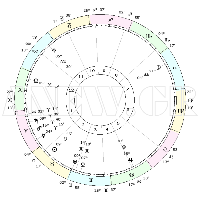 | | ΘΕΣΕΙΣ ΠΛΑΝΗΤΩΝ ΑΣΤΡΟΛΟΓΙΚΟΥ ΧΑΡΤΗ ΤΗΣ ΣΤΙΓΜΗΣ ΑΥΤΗΣ | | | | Πλανήτης | Ζώδιο | Μοίρες | Δεκαήμ. | Σε οίκο | Απόκλιση | | Ακμές των οίκων | | Ηλιος | Ταύρος | 09°42' | Πρώτο | 2 | 14 N 43 | | 1ος | 28°41' | Υδροχόος | | Σελήνη | Ζυγός | 20°33' | Τρίτο | 8 | 11 S 15 | | 2ος | 14°12' | Κριός | | Ερμής | Κριός | 24°11' | Τρίτο | 2 | 07 N 29 | | 3ος | 17°11' | Ταύρος | | Αφροδίτη | Δίδυμοι | 07°07' | Πρώτο | 3 | 22 N 20 | | 4ος | 11°42' | Δίδυμοι | | Αρης | Κριός | 15°38' | Δεύτερο | 2 | 05 N 20 | | 5ος | 03°24' | Καρκίνος | | Δίας | Καρκίνος | 18°47' | Δεύτερο | 5 | 22 N 30 | | 6ος | 26°50' | Καρκίνος | | Κρόνος | Κριός | 09°09' | Πρώτο | 1 | 01 N 38 | | 7ος | 28°41' | Λέων | | Ουρανός | Δίδυμοι | 00°13' | Πρώτο | 3 | 20 N 02 | | 8ος | 14°12' | Ζυγός | | Ποσειδώνας | Κριός | 03°14' | Πρώτο | 1 | 00 N 04 | | 9ος | 17°11' | Σκορπιός | | Πλούτωνας | Υδροχόος | 05°30' | Πρώτο | 12 | 22 S 49 | | 10ος | 11°42' | Τοξότης | | Β. Δεσμός | Ιχθείς | 05°52' | Πρώτο | 1 | 09 S 21 | | 11ος | 03°24' | Αιγόκερως | | Ωροσκόπος | Υδροχόος | 28°41' | Τρίτο | | | 12ος | 26°50' | Αιγόκερως | | Μεσουράνημα | Τοξότης | 11°42' | Δεύτερο | | | |